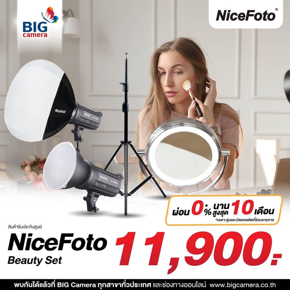 ให้ใบหน้าคุณสวยสว่างเจิดจ้า มีออร่า ไปกับ NiceFoto Beauty Set ไฟสตูดิโอที่จะช่วยให้งานไลฟ์ของคุณปังขึ้น! มาพร้อมหัวไฟ HC-1000SB ใช้งานง่าย สามารถปรับแสงได้ 10 ระดับ และมีเอฟเฟคไฟในตัว 5 แบบ ไม่ว่าจะถ่ายคลิป หรือ ทำไลฟ์สวย ไฟรุ่นนี้ก็ช่วยปรับแสงให้หน้าของคุณเนียนใส เป็นธรรมชาติ เหมือนมีโปรดักชั่นส์มาจัดแสงให้ถึงบ้าน!