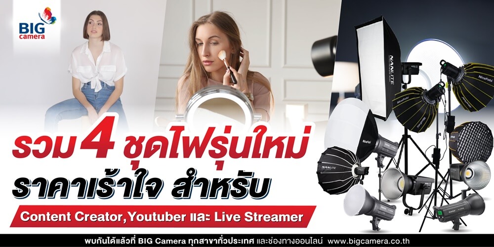 ในยุคนี้ใคร ๆ ก็หันทำงานที่บ้านกันทั้งนั้น ไม่ว่าจะเป็นพ่อค้าแม่ออนไลน์, Content Creator, Youtuber ถ้าคุณเคยเจอปัญหาแสงไม่ได้ ความสว่างไม่พอ ถ่ายไปนาน ๆ แสงเริ่มเปลี่ยน ไม่เห็นสวยเหมือนในสตูดิโอ วันนี้ BIG Camera มีชุดไฟรุ่นใหม่ราคาเร้าใจ มาแนะนำ! รับรองเลยว่าถ้าคุณใช้ชุดไฟสตูดิโอนี้ งานของคุณจะสวย และดูเป็นโปรเฟสชันแนลขึ้นไปอีก