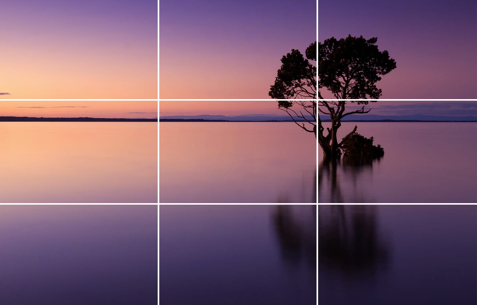 กฎสามส่วนเป็นกฎพื้นฐานที่ช่างภาพมักนึกถึงเป็นอันดับแรกในการจัดองค์ประกอบ และคนส่วนมากก็รู้จัก ซึ่งจะทำให้ภาพของคุณดูสมดุลและน่าสนใจ ฟังก์ชั่นกฎสามส่วนนี้จะช่วยแบ่งภาพของคุณเป็นเก้าช่องเท่าๆ กันตามแนวนอนและแนวตั้ง จากนั้นเราจะวางตัวแบบไว้ที่จุดตัดระหว่างเส้น ซึ่งเป็นจุดที่ดึงดูดความสนใจของผู้ที่ชมภาพอยู่