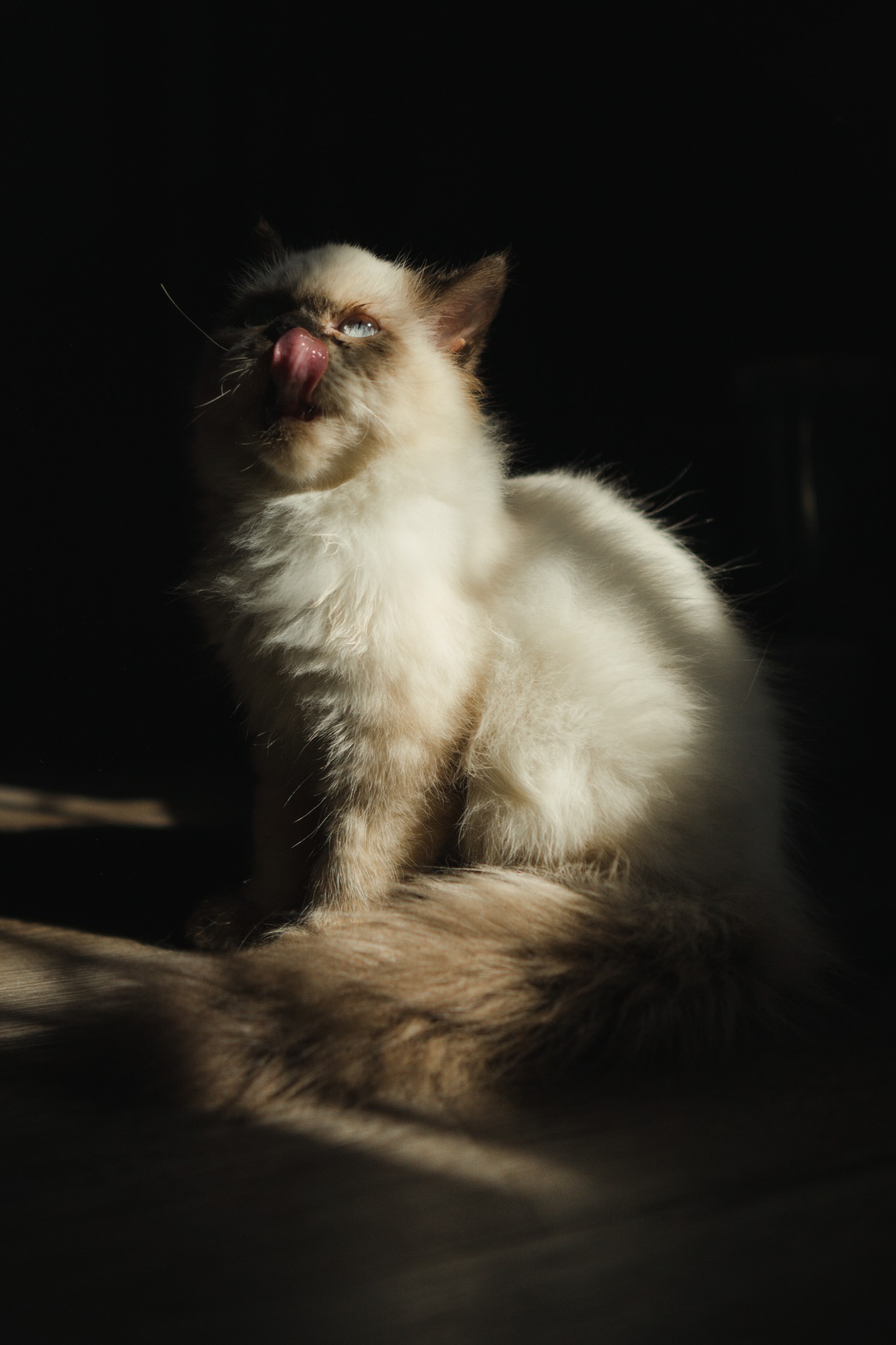 จับมาเล่นกับแสงกันหน่อย ปกติแมวส่วนใหญ่เป็นสัตว์ที่ชอบอาบแดดกันอยู่แล้ว เราก็ใช้โอกาสนั้นแหละถ่ายรูปเจ้านายกับแสงแดดซ่ะเลย หามุมของแสงหน่อยก็จะได้รูปหล่อเท่แบบนี้แล้ว