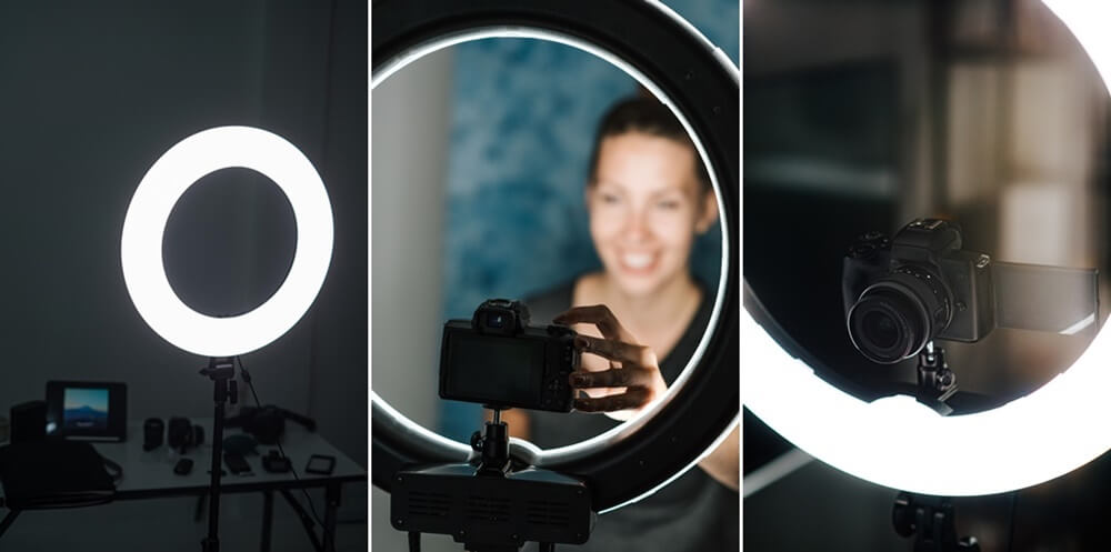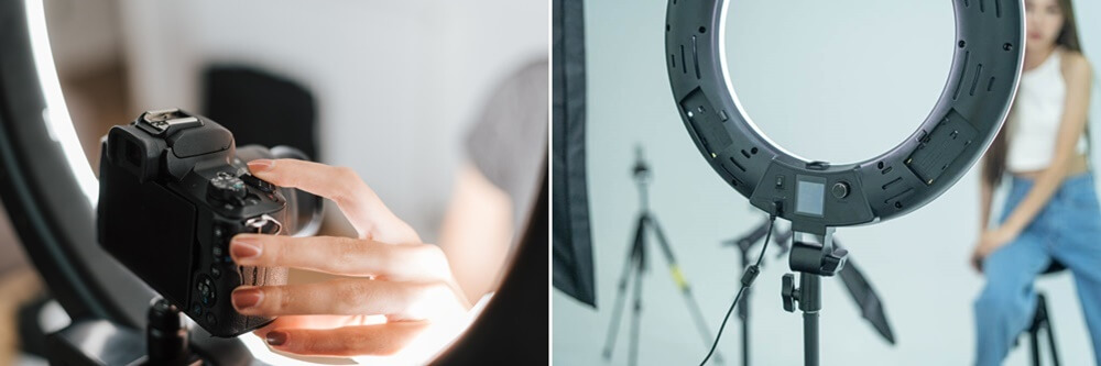 ไฟสุดฮิตสำหรับการ Live Streaming “ไฟวงแหวน (LED Ring Light)” ไม่ว่าใครๆก็ชอบหยิบจับตัวนี้เอามาใช้ไลฟ์สดกัน ยิ่งสาว ๆ ที่ชอบถ่ายรูป อัดคลิปสำหรับลงโซเชียลมีเดียยิ่งเป็นไอเท็มที่ขาดไม่ได้เลยทีเดียว ตัวนี้จะเป็นไฟวงแหวนที่ให้ความสว่างได้ทั่วทั้งหน้าเท่าๆกัน ส่วนใหญ่จะวางไว้ด้านหน้าคนไลฟ์ แถมใช้งานได้สะดวกเพราะส่วนมากแล้วไฟวงแหวนจะมีตัวต่อกล้อง เอาไวตั้งไว้ที่ไฟเพื่อใช้ทำคอนเทนต์ได้สะดวก เหมาะสำหรับสาย Beauty Blogger, คนขายออนไลน์ หรือจะไลฟ์สดธรรมดาก็ใช้ได้ดี