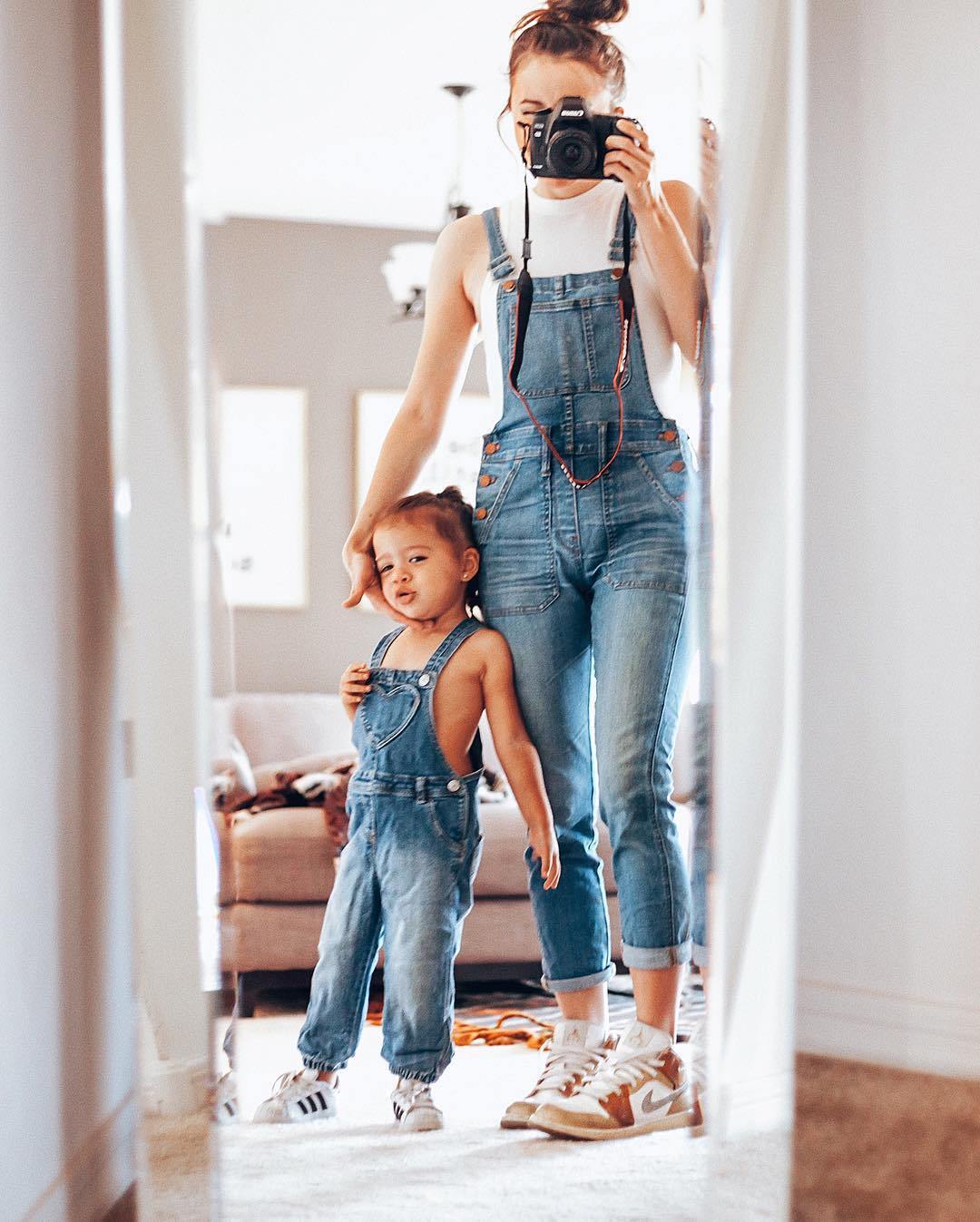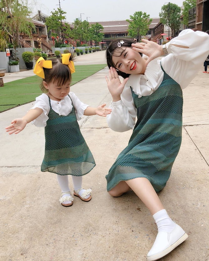เลือกเสื้อคู่น่ารักๆ หรือเสื้อผ้าสไตล์เดียวกันมาใส่คู่กันทั้งแม่และลูก จะทำให้ภาพถ่ายดูน่าสนใจมากขึ้น และช่วยทำให้คุณแม่ดูเด็กลงด้วย