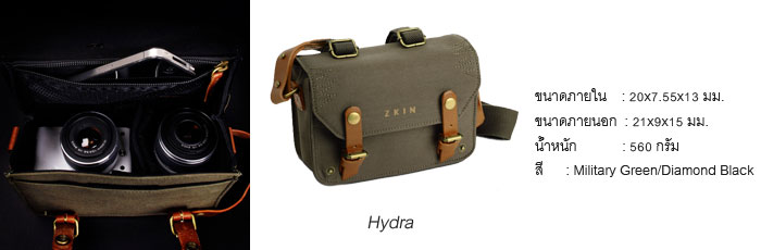 Z-kin รุ่น Hydra และรุ่น Mothman เป็นกลุ่มกระเป๋ากล้องขนาดเล็ก (Small Camera Bag) สำหรับผู้ที่ชื่นชอบการพกพาอุปกรณ์ที่มีขนาดไม่ใหญ่ไปด้วยในวันพักผ่อนสบายๆ สามารถสะพายไหล่ หรือสะพายเฉียงเพื่อความคล่องตัวขณะเดินบันทึกภาพ ทั้งสองรุ่นเหมาะกับกล้องคอมแพคโปร หรือจะเป็นกล้อง Mirrorless ที่มีความกะทัดรัด