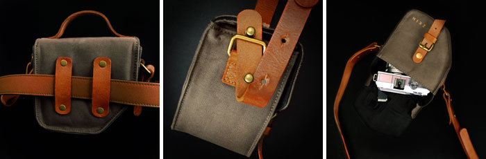 ตัวกระเป๋ามีสายสะพายหนังเส้นยาวสำหรับสะพายเฉียงสามารถปรับความยาวได้ โดยตัวสายเลือกถอดออกได้ตลอดเวลายิ่งเมื่อต้องการปรับไปพกพาแบบ คาดเอวก็สะดวกต่อการเลือกใช้ การเปิดฝากระเป๋าใช้กระดุมทองเหลืองมาช่วยสร้างความคลาสสิคที่ฝากระเป๋าจะมีลิ้นป้องกันฝุ่น และละอองน้ำผ่านเข้าไปในกระเป๋าด้วย เรียกได้ว่าแม้จะจิ๋ว แต่ก็มีความละเอียด ประณีตในการออกแบบ และกรรมวิธีการผลิตไม่แพ้รุ่นใหญ่เลย