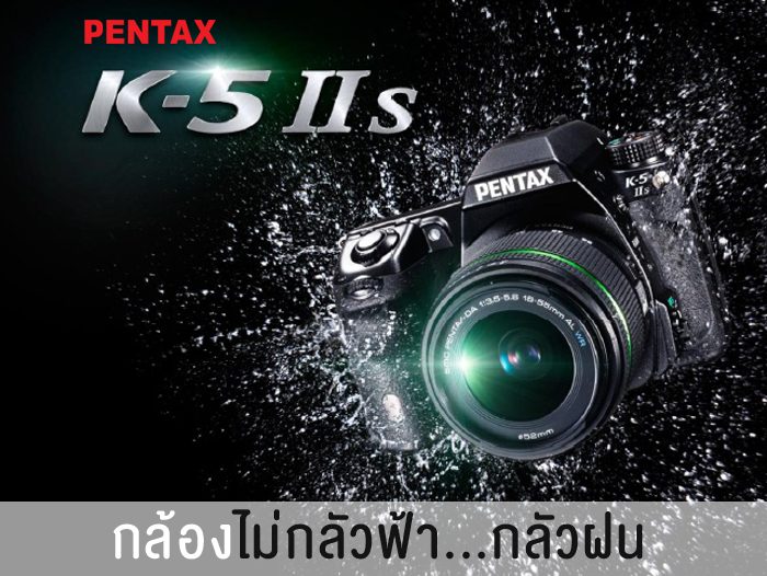 ![]() หลายครั้งที่กำลังเพลิดเพลินกับการถ่ายภาพต้องหยุดลง PENTAX แนะนำกล้องสายพันธุ์แกร่งให้นักถ่ายภาพนำไปใช้งานอย่างต่อเนื่อง โดยมีความพิเศษในเรื่องความทนทานต่อสภาพอากาศ (Weather-Resistant : WR) ด้วยการ ซีลป้องกันน้ำ ฝุ่นละออง ในทุกรอยต่อ เพื่อรองรับผู้ที่ชื่นชอบการถ่ายภาพอันเสี่ยงต่อกล้องจะถูกน้ำกระเซ็นเข้าภายใน โดยเฉพาะในช่วงนี้ฝนฟ้าเริ่มโปรยปรายแบบไม่รู้เนื้อรู้ตัวบ่อยครั้งอันเป็นผลจากการย่างเข้าหน้าฝน แต่อย่างที่เกริ่นไว้ว่าน้ำไม่อาจหยุดจินตนาการให้ดำเนินต่อไปได้การใช้อุปกรณ์ที่ช่วยให้ทำงานอย่างต่อเนื่องย่อมเป็นความได้เปรียบในการได้ภาพที่ผู้อื่นมีโอกาสเหมือนเราได้น้อยมาก ลองไปดูว่ากล้องรุ่นนี้มีอะไรให้ต้องเหลียวกลับมามองกันบ้าง... PENTAX K-5IIs คู่หูใหม่ที่จัดมาพร้อมเลนส์ DA 18-135 mm F3.5-5.6ED AL WR (เทียบเท่า 27-202 มม.ในระบบ 35 มม.) ซึ่งเป็นเลนส์ไม่กลัวน้ำ ไม่กลัวฝุ่นละอองเช่นเดียวกันกับกล้องให้สังเกตที่กระบอกเลนส์จะมีวงแหวนสีเขียวคาดไว้เป็นสัญลักษณ์ ดังนั้นในสถานการณ์ที่ต้องเผชิญกับสายน้ำ หรือแสงแดดจึงสบายใจได้ว่าทั้งกล้อง และเลนส์ปลอดภัยใช้งานต่อได้แน่นอนร้อยเปอร์เซ็นต์ โดยตัวกล้องรุ่นนี้มีฝาแฝดออกมาคู่กัน คือรุ่น K-5II กับ K-5IIs แตกต่างที่เซ็นเซอร์รับภาพของรุ่นหลังนั้นไม่มีฟิลเตอร์ Anti-Alaising (AA filter) เพื่อช่วยให้ภาพมีความคมชัด แสดงรายละเอียดจากแสงที่ตกบนเซ็นเซอร์มากที่สุด แต่ก็มีโอกาสเกิดอาการ Moire’ ได้ แล้วทำไมจึงออกแบบและผลิตมาจัดจำหน่ายทั่วโลก นั่นเป็นสิ่งที่ต้องไปพิสูจน์กันในภาคสนาม... ![]() PENTAX K-5IIs กล้องดิจิตอลSLR (Digital Single Lens Reflex) สำหรับกลุ่มสมัครเล่นเริ่มจริงจัง (Semi Pro.) มาพร้อมประสิทธิภาพที่ใส่มาให้เกินหน้าเกินตากล้องในระดับเดียวกันทั้งหมดหลายต่อหลายอย่าง แม้หน้าตาภายนอกจะดูไม่แตกต่างมากนัก มีการออกแบบขนาดที่กะทัดรัด ชดเชยการจับถือให้กระชับด้วยกริปจับขนาดใหญ่เซาะร่องวางนิ้ว ติดยางกันลื่นได้แน่นหนึบ ซีลยางกันฝุ่น และน้ำทุกรอยต่อช่วยให้ใช้งานในสภาพอากาศหนาวเหน็บถึง -10 องศาเซลเซียส โดยยางที่ใช้ซีลนี้ไม่ต้องไปเปลี่ยนทุกครั้งเวลาออกทริปเหมือนกลุ่มกล้องกันน้ำที่นำไปใช้ใต้น้ำแล้วมีโอกาสเสียหายจากแรงดันอากาศเป็นปัจจัยสำคัญ โครงสร้างหลักกล้องรุ่นนี้ใช้ Magnesium Alloy มีคุณสมบัติ แกร่งทนทาน น้ำหนักเบา ใส่วงแหวน Dial ควบคุมรูรับแสง และความเร็วชัตเตอร์แยกกันทำให้ควบคุมรวดเร็วปรับเปลี่ยนค่าการทำงานของกล้องคล่องตัว แป้นปรับโหมดการทำงานจะหมุนได้รอบตัวโดยมีปุ่มล็อกแป้นไม่ให้เลื่อนเปลี่ยนโหมดขณะเก็บ หรือหยิบออกมาจากกระเ