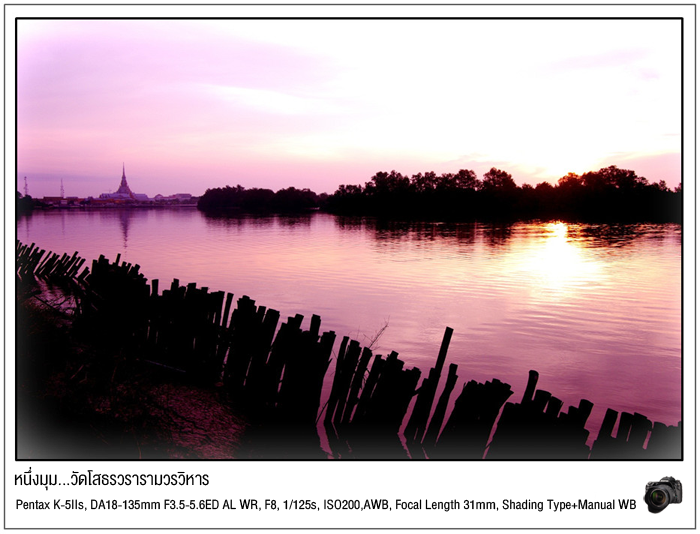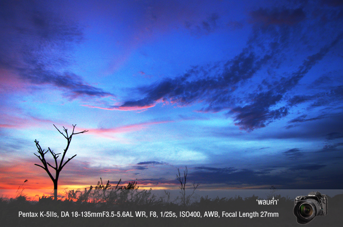 PENTAX K-5IIs พกติดกระเป๋าอยู่หลายวันจึงมีโอกาสแวะจอดรถถ่ายภาพตอนพระอาทิตย์ตกดินก่อนถึงทางเข้าบ้าน หรือเดินทางไปถ่ายภาพริมน้ำที่หลังบ้านพักต่างจังหวัดมีโอกาสสัมผัสธรรมชาติร่วมกับเลนส์ช่วงเอนกประสงค์แม้จะเป็นช่วงที่ไม่ไกลมากก็ไม่รู้สึกอึดอัดเพราะโดยปกติจะหยิบเลนส์ช่วงเทเลโฟโต้มาใช้เป็นครั้งคราวยิ่งตอนนี้เลนส์ระยะนี้เป็นที่นิยมจำหน่ายร่วมกับกล้องหลายๆรุ่น ฟังก์ชั่นในกล้องมีให้เลือกใช้หลากหลายแต่ถูกจัดแยกเป็นหมวดหมู่เลือกใช้เข้าใจได้ไม่ยาก อ้าว!อยู่ดีๆฝนก็พรำลงมาอีกแล้วไม่ต่างจากตอนที่ถ่ายภาพเพลินๆแล้วฝนตกก็พาให้เสียอารมณ์แต่นึกอีกทีจะวิ่งหลบฝนไปทำไม...ก็ทั้งกล้อง และเลนส์ไม่กลัวน้ำนี่นาว่าแล้วก็เลือก Digital Filter เปลี่ยนการถ่ายภาพแบบเดิมๆให้กลายเป็นงานศิลปะได้ทันทีทั้งปรับหลังถ่ายภาพ หรือตั้งล่วงหน้าไว้ก็ได้ ฟิลเตอร์ที่ใช้บ่อยก็จะเป็นToy Camera, Monochrome, HDR, Extract Color (เลือกใช้ได้เฉพาะกับการบันทึกภาพแบบ JPEG เท่านั้น)![]() PENTAX K-5IIs มีความเร็วในการถ่ายภาพต่อเนื่องไม่ใช่เล่นๆเพราะทำได้สูงสุด 7 ภาพ/วินาทีช่วยรัวในจังหวะเด็ดๆได้อย่างรวดเร็วครบทุกแอ็คชั่น สำหรับในโหมดปกติตั้งค่าความเร็วชัตเตอร์ตั้งแต่ 30 วินาทีจนถึง 1/8000 วินาที นับว่าสูงมากระดับกล้องมืออาชีพสามารถนำไปใช้ในสภาพแสงแดดจัดเพื่อเปิดรูรับแสงกว้างให้ฉากหลังเบลอสวยงาม หรือถ่ายภาพจังหวะน้ำกระเซ็นขึ้นมาแบบถึงอารมณ์ นอกจากนี้ยังถ่ายภาพง่ายๆด้วยระบบ Live View ที่อยู่ในเกณฑ์ดีแม้จะไม่ไวมากแต่ก็ไม่หน่วงจนเสียจังหวะส่วนเรื่องการบันทึกภาพวิดีโอก็เลือกไฟล์ให้มีความคมชัดระดับ Full HD 1080 p เพียงแตะปุ่มโฟกัสให้ระบบ AF ทำงานจากนั้นกดชัตเตอร์เพื่อให้เริ่มต้นบันทึก ![]() PENTAX K-5IIs มีฟังก์ชั่นให้ใช้จนเลือกไม่ถูกหลายฟังก์ชั่นที่มักมีในกล้องรุ่นใหญ่ อาทิการแก้ไขความคลาดสี, แก้ไขอาการโค้งจากมุมรับภาพ ซึ่งการถ่ายภาพต่อเฟรมจะต้องรอการประมวลผลเล็กน้อยไม่สามารถบันทึกภาพต่อเนื่องได้ทันที นอกจากนั้นยังมีฟังก์ชั่น AF Fine Adjustment สำหรับการขยับเซ็นเซอร์แก้อาการ Back หรือ Front Focus เมื่อใช้ร่วมกับเลนส์บางตัว อีกตัวที่เด่นมากช่วยชีวิตได้ดีกรณีลืมหยิบสายลั่นชัตเตอร์ใส่กระเป๋าเป็นการกดชัตเตอร์ B เพียงครั้งเดียวแต่จะค้างไว้ถ้าต้องการให้ปิดเมื่อไรก็มากดอีกครั้งให้กระจกดีดกลับลงไป ฟังก์ชั่นนี้พาให้คิดถึงชัตเตอร์ T ที่มีในอดีตเรียกว่าหลักการเดียวกันเลยแต่นักถ่ายภาพไม่ค่อยได้ใช้กันจึงค่อยๆหายไป ส่วนท่านที่ชอบเล่นเทคนิคถ่ายภาพซ้อน (Multi Exposure) แบรนด์นี้จัดมาให้เช่นกัน ยังมีอีกหลายส่วนท