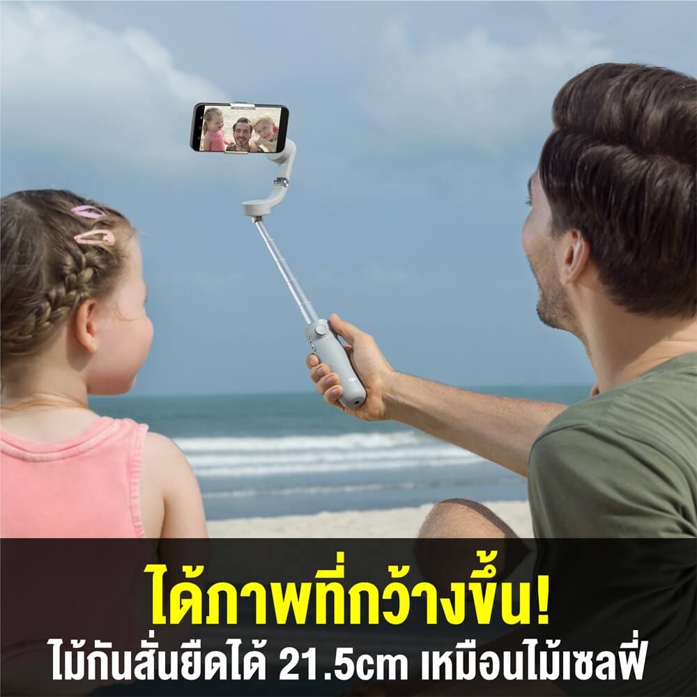 ครั้งนี้ DJI OM 5 ก็ได้ดีไซน์ออกมาไม้กันสั่นมาให้ยืดออกได้ถึง 21.5cm ทำให้เก็บรายละเอียดภาพได้กว้างขึ้น ไม่ว่าจะเป็นการถ่ายภาพมุมต่ำหรือมุมสูง แถมยังถ่ายคอนเทนต์ได้หลากหลายแบบและสนุกกับการถ่ายมากยิ่งขึ้น