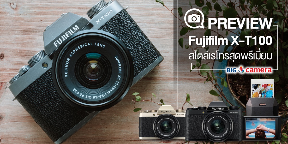 เปิดตัวน้องใหม่ล่าสุด!!!! Fujifilm X-T100 กล้อง Mirrorless จากซี่รี่ส์ X ในระดับเริ่มต้น ดีไซน์มาให้ง่ายต่อการใช้งาน เพื่อให้การถ่ายภาพในทุกวัน ได้ภาพสุดเพอร์เฟ็กต์ ยังคงสไตล์ เรโทรตามแบบฉบับกล้องฟูจิฟิล์ม และที่พิเศษกว่านั้นมีการเคลือบอะลูมิเนียมที่ตัวบอดี้เสริมให้ดูพรีเมี่ยมยิ่งขึ้น ไปดูกันดีกว่าว่าสเป็กเด่นจากกล้องรุ่นนี้จะมีอะไรโดนๆ บ้าง