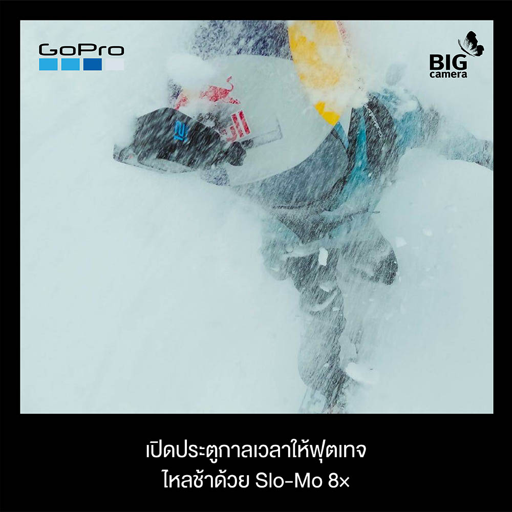 เพื่อให้ฟุตเทจเตะตาน่าสนใจยิ่งกว่าใคร GoPro Hero 12 Black จึงมาพร้อมฟังก์ชั่นพิเศษเพื่อเติมช็อตเด็ดแบบสโลโมชั่นเข้าไปในงานวิดีโอของคุณ เผยโลกแห่งการผจญภัยในมุมมองที่ประตูกาลเวลาไหลช้าลงกว่าปกติถึงแปดเท่า กับ Slo-Mo 8×