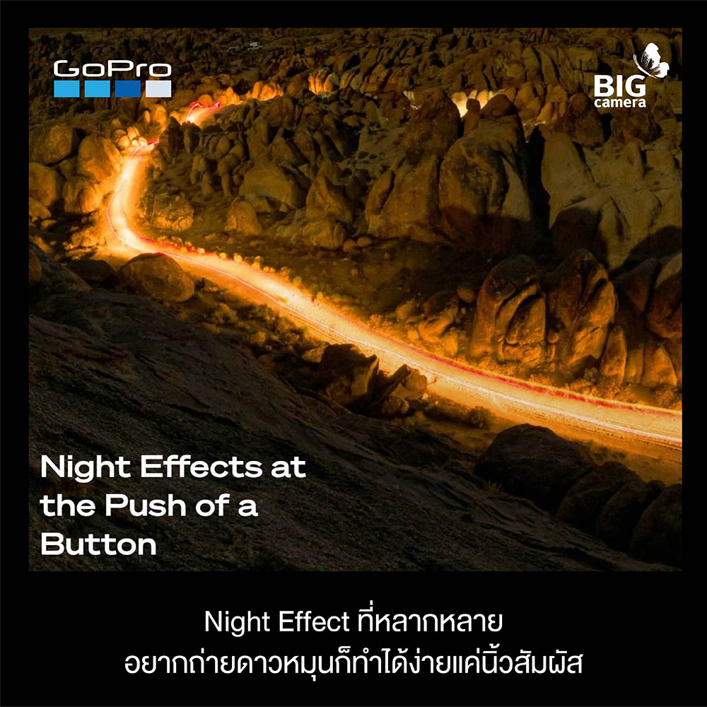 สนุกไปกับเส้นแสงแห่งราตรีด้วย Night Effect ที่หลากหลายของ GoPro Hero 12 Black วาดเขียนทุกจินตนาการไปกับ Light Painting บันทึกทุกเส้นแสงแห่งเมืองใหญ่มหานครด้วย Vehicle Light Trails และพิเศษสุด ๆ กับแสงดาวที่หมุนไปตามแกนโลกของ Star Trails