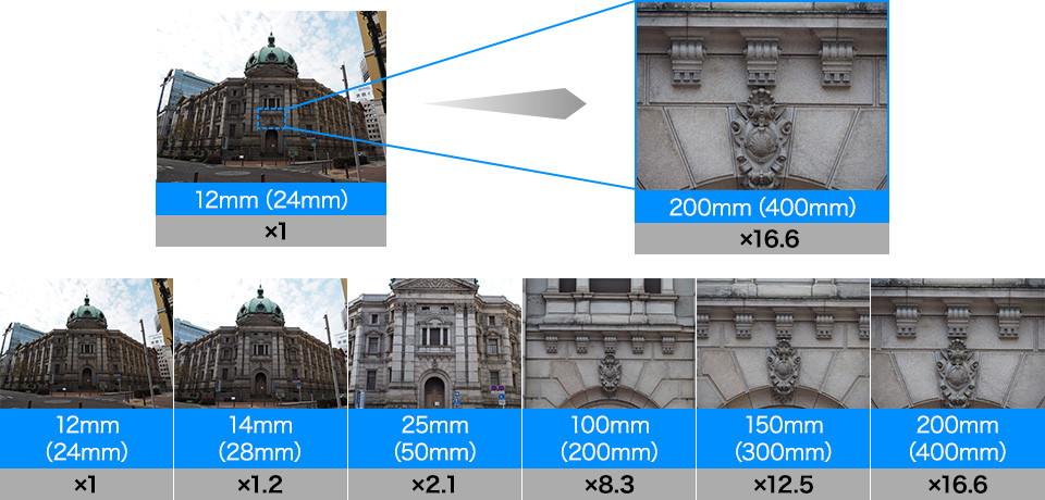 ระยะของเลนส์ใช้กับกล้องตัวคูณอย่างเซ็นเซอร์ Micro Four Third ของค่าย ทำให้เลนส์รุ่นนี้มีทางยาวโฟกัสที่เทียบเท่า 24-400mm เลย ช่วงทางยาวโฟกัสที่ 12mm กว้างพอที่จะช่วยให้เราเก็บภาพวิวทิวทัศน์ สถาปัตยกรรม วัด สถานที่ต่างๆ ได้ครบ โดยที่เราไม่ต้องถอยไกลๆ เพื่อเก็บภาพ และค่า f ตอนใช้ 12 mm ก็จะอยู่ที่ f3.5 ครับ แต่ระวังนิดนึงนะครับพอเราเปลี่ยนทางยาวโฟกัสไป ค่า f ก็จะเปลี่ยนไปเรื่อยๆ 17mm – F4.2, 25mm – F4.7 ประมาณนี้ครับ