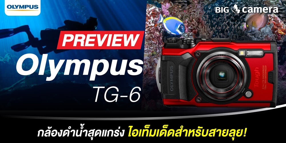 อยากได้ภาพใต้น้ำสวยๆ Olympus TG-6 จัดให้! กล้องดำน้ำสุดแกร่ง ที่สามารถกันน้ำได้ลึกถึง 15 เมตร โดยไม่ต้องใช้อุปกรณ์เสริม มาพร้อมเซ็นเซอร์ BSI CMOS ความละเอียด 12 ล้านพิกเซล ถ่ายวิดีโอความละเอียด 4K ให้การใช้งานที่จัดเต็ม ลุยไปกับเราได้ทุกที่ ไม่ว่าจะไปทะเล ภูเขา ล่องแก่ง หรือใช้ในชีวิตประจำวันก็ตาม