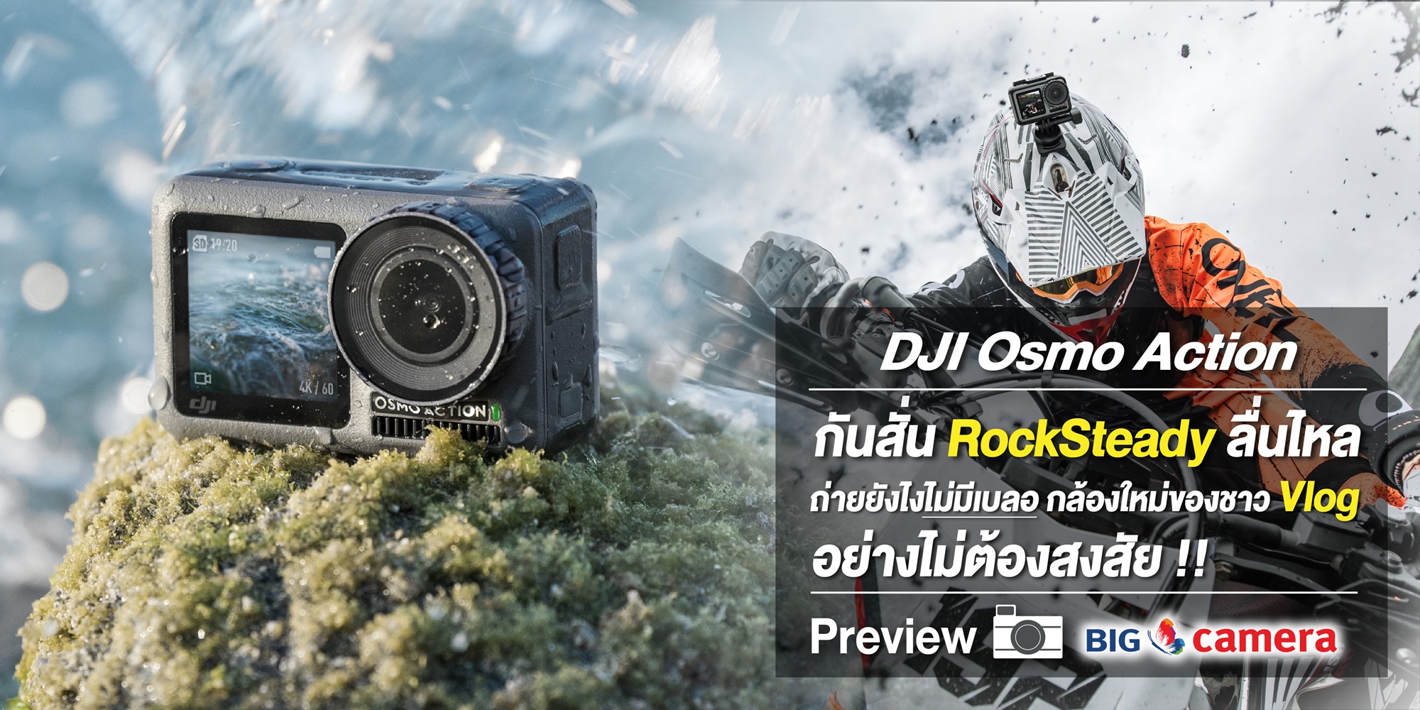 สิ้นสุดการรอคอย สำหรับสาวกค่าย DJI ที่คราวนี้ทาง DJI ไ้ด้ประกาศเปิดตัวกล้องแอคชั่นคาเมร่าตัวใหม่ DJIOsmo Action เรียกได้ว่าเป็นรุ่นแรกของทาง DJI เลย หลังจากที่ได้ปล่อยกิมบอลจิ๋วออกมาเมื่อปลายปีที่แล้ว หรือโดรน อุปกรณ์ที่ช่วยสร้างมุมมองอันโดดเด่น ที่ได้สร้างชื่อเสียงให้พวกเขามามากมาย และนี้คือ DJI Osmo Action กล้องแอคชั่นคาเมร่าตัวเล็ก ที่มาพร้อมกับจอ 2 ด้าน ความสามารถในการถ่ายวิดีโอ และฟีเจอร์มากมาย ที่ล้วนแล้วแต่เกิดมาเพื่อเอาใจชาว Vlog สายลุย