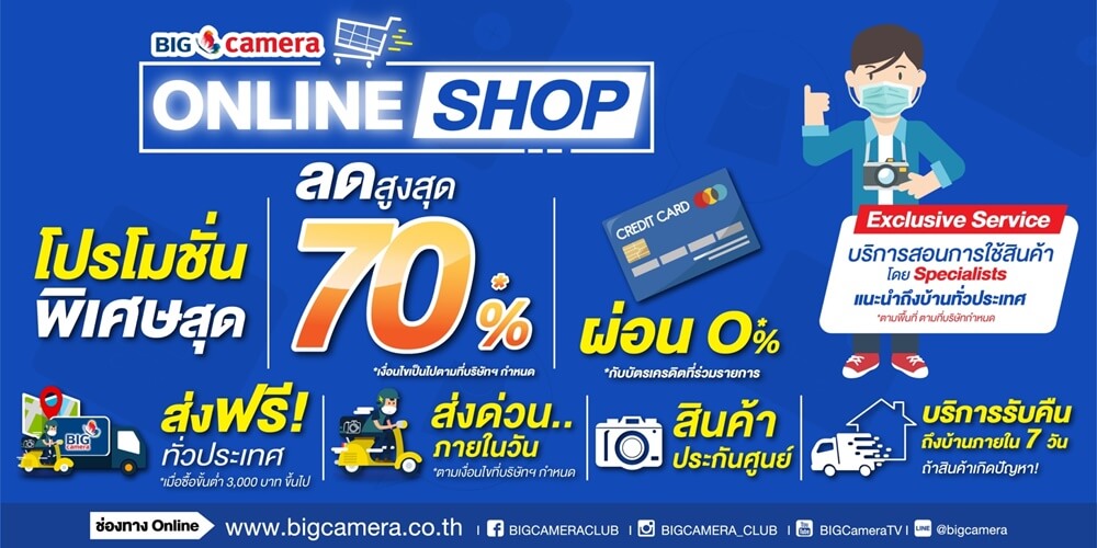 พลาดไม่ได้!! กับโปรโมชั่นผ่อน 0 % นานสูงสุด 10 เดือน สอบถามได้ ที่ Big Camera ทุกสาขาทั่วประเทศ หรือ www.bigcamera.co.th