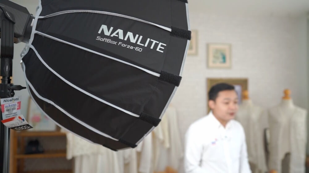ในส่วนของแสงก็สำคัญไม่แพ้กัน ถ้าอยากขายสินค้าได้ง่ายๆ ปล่อยของออกได้เยอะๆ ต้องให้ลูกค้าเห็นสินค้าครบทุกรายละเอียด! ไฟ Nanlite Froza 60 เป็นไฟสตูดิโอสีขาวแบบ Daylight สามารถปรับความสว่างของเเสงได้ 0-100% หรือถ้าอยากได้แสงที่นุ่มละมุน ก็สามารถต่อกับ Softbox ได้