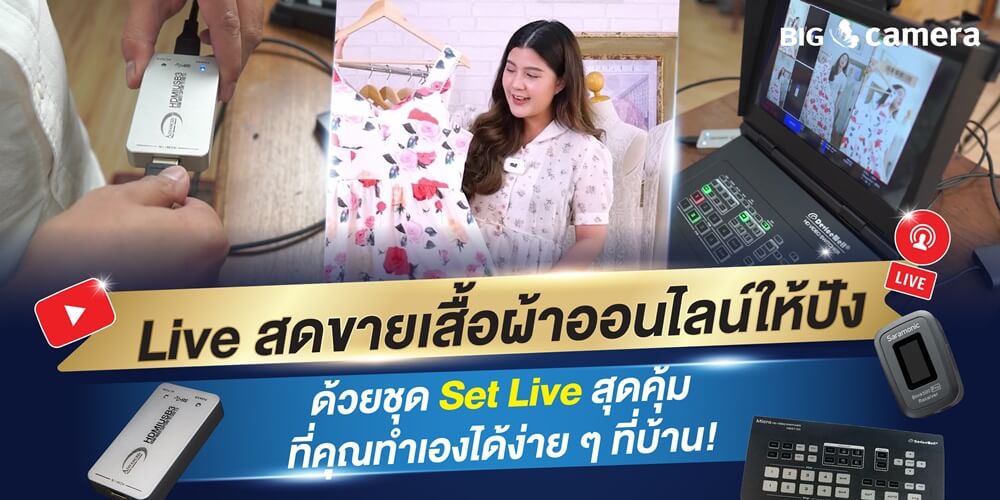 Live ขายของออนไลน์แล้วสะดุด ภาพไม่คมชัด แสงไม่ดี เสียงไม่ได้ แต่อยากเพิ่มยอดขายให้ปัง วันนี้ BIG Camera มีตัวช่วยดีๆ อย่าง Set “Live Streaming ขายเสื้อออนไลน์” ที่จะมาช่วยเนรมิตไลฟ์ของคุณให้ดีขึ้น! ได้ Live คุณภาพดี แสงสวย เสียงชัด ไม่มีกระตุก น่าติดตามชนิดที่ว่าลูกค้ากด CF กันรัว ๆ แถมยังสามารถจัด Set Live ได้เองแบบง่าย ๆ ไม่ต้องจ้างทำ Production ให้เสียเงิน!