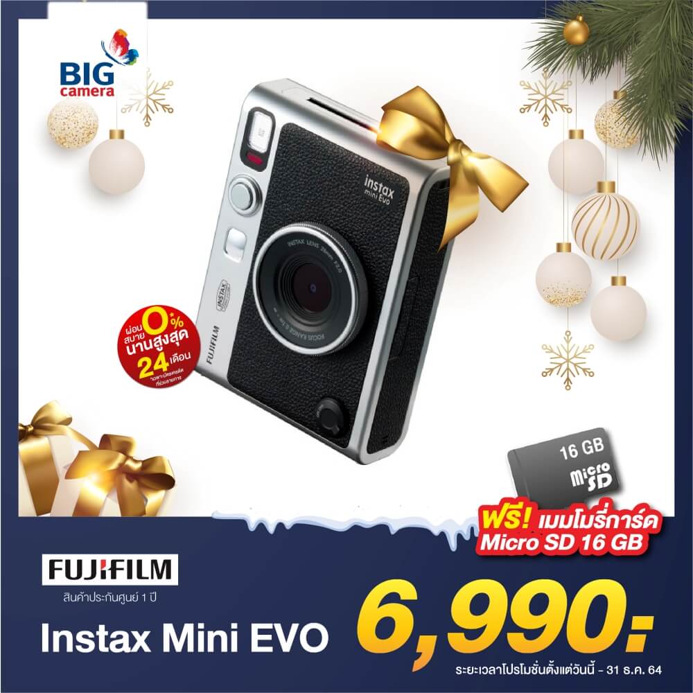 เริ่มกันที่ไอเทมสุดฮิต instax mini Evo กล้องดิจิทัลปริ้นท์ได้ เก็บโมเม้นท์ได้ทันใจทั้งแบบดิจิทัลและอนาล็อก ตัวบอดี้ให้อารมณ์กล้องฟิล์มมากที่สุดในตอนนี้! มาในขนาดกะทัดรัด พกพาง่าย พร้อมลูกเล่นที่เยอะกว่าเคย สามารถเลือกเปลี่ยนเลนส์เอฟเฟค และฟิล์มเอฟเฟคได้ถึง 100 รูปแบบ ตอบโจทย์ได้ทุกไลฟ์สไตล์แน่นอน ที่สำคัญเอาไปเป็นของขวัญให้คนพิเศษได้เหมาะสุดๆ เพราะบอกเลยว่ากล้องตัวนี้ Exclusive มาก ๆ เพราะมีขายเฉพาะที่ BIG Camera เท่านั้น!