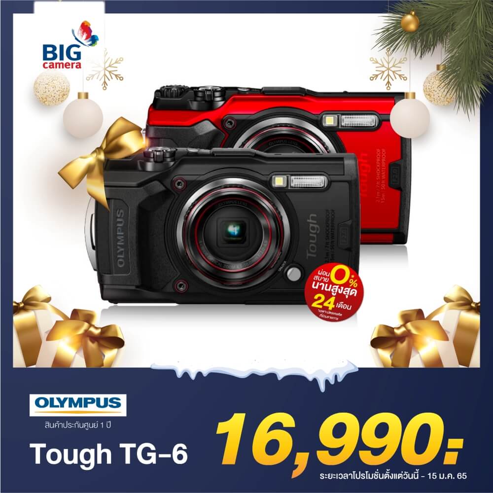 หาของขวัญให้คนพิเศษสายท่องเที่ยวขาลุยและชอบดำน้ำ! กล้อง Olympus Tough TG-6 ตอบโจทย์แน่นอน เพราะได้ชื่อว่าเป็นกล้องดำน้ำสุดแกร่ง สามารถกันน้ำได้ลึกถึง 15 เมตร โดยไม่ต้องใช้อุปกรณ์เสริม มาพร้อมเซ็นเซอร์ BSI CMOS ความละเอียด 12 ล้านพิกเซล ถ่ายวิดีโอความละเอียด 4K ให้การใช้งานที่จัดเต็ม ลุยไปกับเราได้ทุกที่ ไม่ว่าจะไปทะเล ภูเขา ล่องแก่ง หรือจะใช้ในชีวิตประจำวันก็ทำได้ดี!