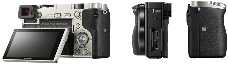 | A6000 ใส่ช่องมองภาพแบบอิเล็คทรอนิคส์ (Electronic Viewfinder) ความละเอียด 1.44 ล้านจุดให้อัตราขยาย 0.70x จึงใสสว่างมากมองเห็นภาพ 100% ตามที่เซ็นเซอร์มองเห็นที่ข้างช่องมองจะมีเซ็นเซอร์คอยตรวจจับสัญญานเมื่อสายตาแนบช่องมองภาพตัวจอ LCD จะดับลงทันทีเพื่อช่วยประหยัดพลังงานแบตเตอรี่และไม่จำเป็นต้องใช้พร้อมกัน สำหรับท่านที่ไม่ถนัดกับการเล็งภาพผ่านช่องมองก็มีจอ LCD ขนาด 3 นิ้วสัดส่วน 16:9 ให้ภาพคมชัดสามารถปรับพลิกมุมมองได้อิสระในมุมก้ม 45 องศาและเงย 90 องศา ด้วยความละเอียด 921,600 จุดซึ่งมีขายึดที่แข็งแรงไม่ต้องกังวลว่าจะไม่มั่นคงได้รับการออกแบบให้แนบกับตัวกล้องเมื่อพับเก็บในมุมปกติ ด้านซ้ายของกล้องจะมีช่อง Multi-interface port สำหรับชาร์จแบตเตอรี่ เชื่อมต่อคอมพิวเตอร์อยู่ด้านบน และช่อง Micro-HDMI สำหรับต่อภาพออกภายนอก อาทิจอโทรทัศน์, Projector (รองรับการดูภาพในระบบ4K หรือUltra HD) |