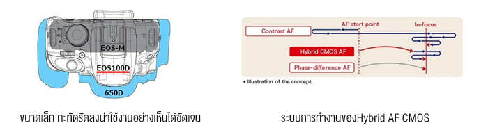 เมื่อแบรนด์ชั้นนำอย่าง Canon สร้างสถิติความเป็นที่สุดอีกครั้ง ด้วยกล้องเซ็นเซอร์ขนาด APS-C บอดี้มีขนาดเล็ก และน้ำหนักเบาที่สุดในโลก นับว่าเป็นการเปิดตลาดใหม่มาลดช่องว่างให้ใกล้กับกล้อง Mirrorless Canon EOS 100D กล้อง DSLR น้องใหม่ที่มีความสดใหม่...มีความเป็นที่สุดให้กล่าวขาน และทดสอบประสิทธิภาพการใช้งานหลากหลายด้าน ซึ่งแน่นอนว่า BIG Camera ไม่พลาดที่จะคว้าตัวเป็นๆไปค้นหาความเป็นที่สุดให้บรรดา Photolista ที่ติดตามรายละเอียดได้มั่นใจในประสิทธิภาพว่ากล้องรุ่นนี้เหมาะสำหรับการนำไปใช้งานอย่างไร ก่อนจะรับไปดูแลร่วมกับกล้องที่มีอยู่แล้ว หรือตัดสินใจเลือกเป็นกล้องตัวแรกในชีวิต เชิญไปร่วมค้นหาความสุข ความสนุกพร้อมกันเลยครับ... Canon EOS 100D เพื่อนใหม่ที่รับมาพร้อมเลนส์ EF 40mm F2.8 STM สร้างความตื่นเต้นเป็นอย่างมาก กับความเล็กที่เทียบเท่าiphone4 (116.8 x90.7 x 69.4mm) และน้ำหนักเพียง 370g เท่านั้น Canon เข้าใจถึงความต้องการที่แท้จริงของผู้ที่รักการถ่ายภาพ ออกแบบกล้องได้โดนใจ พัฒนาให้รูปทรงเล็กกะทัดรัด สะดวกต่อการพกพา และยังสามารถหยิบขึ้นมาใช้งานโดยไม่เคอะเขินในชีวิตประจำวันได้อย่างสบายๆ เช่น ถ่ายภาพอาหารก่อนกินแล้วนำไปอวดเพื่อนทางเฟสบุ๊ค, เดินถ่ายภาพชีวิตผู้คนตามถนนหนทาง Canon EOS 100D จับโฟกัสได้ฉับไว รวดเร็วตามที่ได้อ้างอิงไว้ทั้งขณะถ่ายภาพนิ่ง และภาพเคลื่อนไหว โดยการเล็งภาพผ่านช่องมอง (Viewfinder) นั้นจะมีโฟกัส 9 จุดให้เลือกใช้ซึ่งจุดกลางเป็นแบบกากบาท (Cross Type) รองรับการหาโฟกัสทั้งเวลาถ่ายภาพแนวตั้ง และแนวนอน สำหรับการโฟกัสแบบ Live View สามารถตอบสนองได้ละเอียดเกือบถึงขอบภาพ การจับจังหวะจึงเป็นเรื่องสำคัญในการกดชัตเตอร์ที่มีให้เลือกทั้งทีละภาพ กดรัว หรือตั้งเวลาบันทึกล่วงหน้า แม้จะเจอกับสองสภาพแสงในเฟรมเดียวกันก็ไม่เป็นอุปสรรค สำหรับสีสันสามารถปรุงเพิ่มเติมได้หลากหลายทั้งในฟังก์ชั่นทั่วไปด้วย Picture Style และเลือกใช้ฟิลเตอร์สร้างสรรค์โทนสีภาพให้แปลกแตกต่างจากที่เคยทั้งการถ่ายครั้งเดียวได้ภาพหลายโทนสีคือมีไฟล์สีปกติเป็นต้นฉบับอีกภาพเป็นโทนสีพิเศษ (Extra Effect Shot) หรือเลือกปรับทีละเฟรมตามความชอบ อันนี้คงถูกใจผู้ที่ชื่นชอบการใช้ App. ตกแต่งภาพในสมาร์ทโฟนไม่น้อย โดยเข้าไปเลือกโทนสีไว้ล่วงหน้าในเมนู ที่ทำเช่นนี้ได้ต้องขอบคุณ DIGIC5 ที่ทำให้ฝันของนักถ่ายภาพเป็นจริงเอาไปเลยสามคำ...สุด ยอด มาก Canon EOS 100D ช่วยเก็บภาพจังหวะต่อเนื่องได้สูงสุด 4 ภาพ/วินาทีในโหมดปกติ และ 2.5 ภาพ/วินาที ในโหมดถ่ายภาพเก็บเสียง (เงียบ) แต่ก็สามารถกดได้เป็นชุดๆขึ้นอยู่กับเมมโมรี่การ์ดที่ใส่ไว้ด้วย แนะนำว่าพยายา