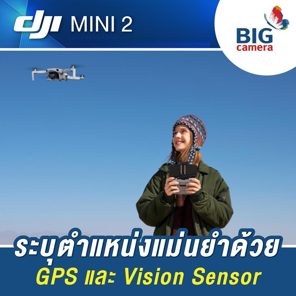 นอกจากนี้ DJI Mini 2 ยังสามารถควบคุมด้วยการระบุตำแหน่งที่แม่นยำด้วย GPS และ Vision Sensor 2 ทำให้การเคลื่อนตัวในทุกครั้งเป็นไปได้อย่างแม่นยำ ไม่ว่าจะเป็นสถานที่ใดก็ตาม