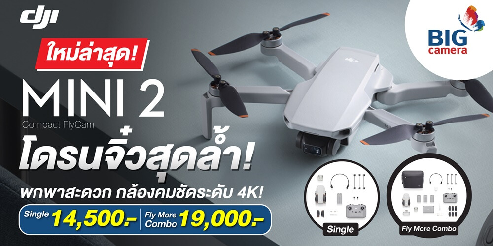 DJI Mini 2 โดรนจิ๋วสุดล้ำ Item ใหม่ที่นักบินโดรนห้ามพลาด! ที่มาพร้อมไซส์เล็ก กะทัดรัด พกพาสะดวก ให้คุณหยิบมาถ่ายช็อตสวย ๆ ได้ทุกสถานการณ์ ไม่ว่าจะเป็นระหว่างเดินทางหรือเก็บภาพโมเมนท์แสนน่าประทับใจในช่วงเวลาแต่ละวัน พร้อมอัพเกรดให้เจ๋งกว่าเดิมด้วยกล้องคมชัดระดับ 4K และยังมีฟีเจอร์ใหม่ๆ มาอีกเพียบ กับราคาสุดคุ้ม!