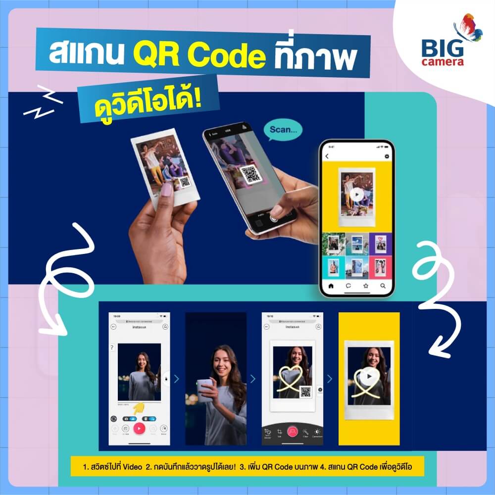 ลูกเล่นใหม่ ที่นอกจากวาดด้วยตัวเครื่องได้แล้ว ยังแชร์โมเม้นท์น่ารัก ๆ ผ่าน QR Code บนภาพได้อีกด้วย โดยจะต้องสวิทซ์เป็นโหมดวิดีโอ กดบันทึกพร้อมตั้งท่าแอคชั่น+วาดรูป แอด QR Code บนภาพ พอปริ้นท์ออกมาก็จะมีโค้ดให้สแกน แค่นี้ก็ได้ดูวิดีโอสุดคิ้วท์ที่วาดผ่านเครื่อง instax mini Link 2 แล้ว!