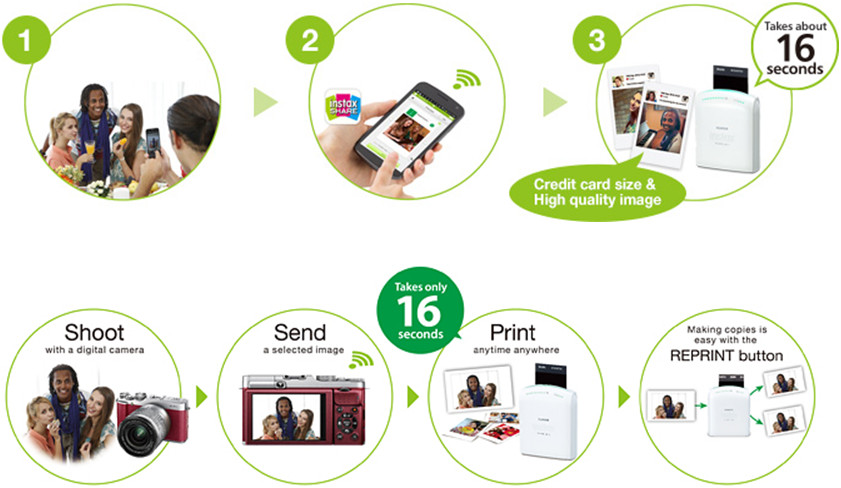 Fujifilm มักสร้างปรากฎการณ์ความแปลกใหม่ทันสมัยให้กับวงการการถ่ายภาพอยู่เสมอด้วยแนวความคิดนำเทคโนโลยีที่มีอยู่แล้วมาผสมผสานกับรูปแบบการใช้งานของกลุ่มเป้าหมาย ซึ่งครั้งนี้ไม่ธรรมดาเพราะไม่ได้ครอบคลุมแค่คนในวงการถ่ายภาพเท่านั้นที่สามารถนำไปใช้งานได้เพราะมันเป็นนวัตกรรมที่ออกแบบมาเพื่อสนองรูปแบบการใช้ชีวิตของสังคมเมืองที่นิยมการถ่ายภาพแล้วแบ่งปันประสบการณ์ให้กับเพื่อนๆทางโลกออนไลน์แบบปัจจุบันทันด่วน แต่สิ่งที่ขาดหายไป คือมันไม่สามารถจับต้องเก็บความทรงจำได้เหมือนครั้งหนึ่งที่เรามีอัลบั้มภาพมานั่งดูเวลาเจอกัน ฟูจิฟิล์มมีความเชี่ยวชาญด้านการพิมพ์ภาพทั้งที่เป็นแล็บล้างอัดภาพ และการพิมพ์ด้วยฟิล์มอินสแตนด์จากกล้อง Instax จึงมองเห็นช่องว่างในการนำเรื่องราวที่เก็บลงเมมโมรี่การ์ด หรือหน่วยความจำมาถ่ายทอดเป็นภาพขนาดเล็กสำหรับการแบ่งปันที่มากกว่าเดิม อาทิการมอบภาพให้เพื่อนเมื่อนัดพบกัน หรือการมอบภาพให้ตัวแบบจำเป็นที่พบเจอขณะท่องเที่ยวถ่ายภาพ ซึ่งเรื่องราวดีๆเหล่านี้กำลังดำเนินไปด้วยกลยุทธ์การพกพาสะดวกใช้ได้ทุกที่ทุกเวลาแม้สถานที่นั้นจะปราศจากกระแสไฟฟ้า ลองไปติดตามว่าเครื่องมือใหม่ล่าสุดจะถูกอกถูกใจคอนักถ่ายภาพและคอไซเบอร์ได้อย่างไรกัน...