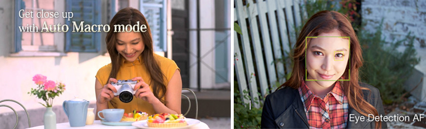 - ระบบโฟกัสใหม่ Eye Detection AF, Auto Macro AF และMulti AF