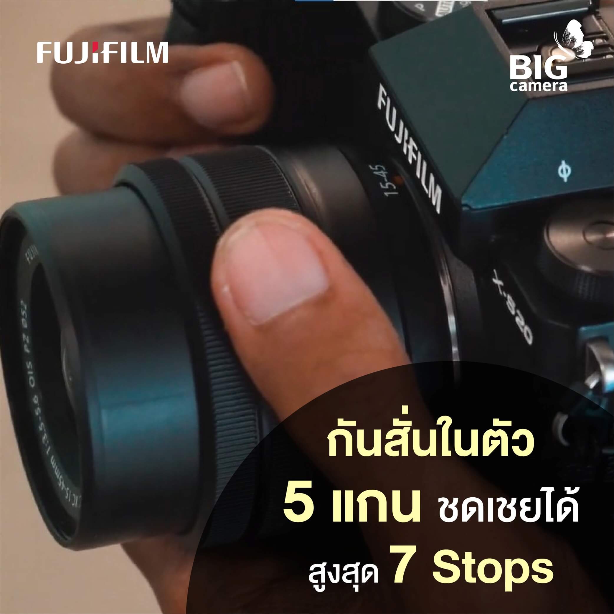 X-S20 มีระบบกันสั่นในตัว (IBIS) 5 แกน และสามารถชดเชยความเร็วชัตเตอร์ได้มากกว่ารุ่นก่อน ๆ ที่ 7 สต็อป อีกทั้งยังมีน้ำหนักที่เบาเพียง 491 กรัม ใช้ง่าย จับถนัดมือ ดังนั้นเหล่า Content Creator จึงสามารถพก X-S20 ไว้เพื่อถ่าย Content ได้ทุกรูปแบบ พร้อมลุยไปกับคุณในทุกสถานการณ์
