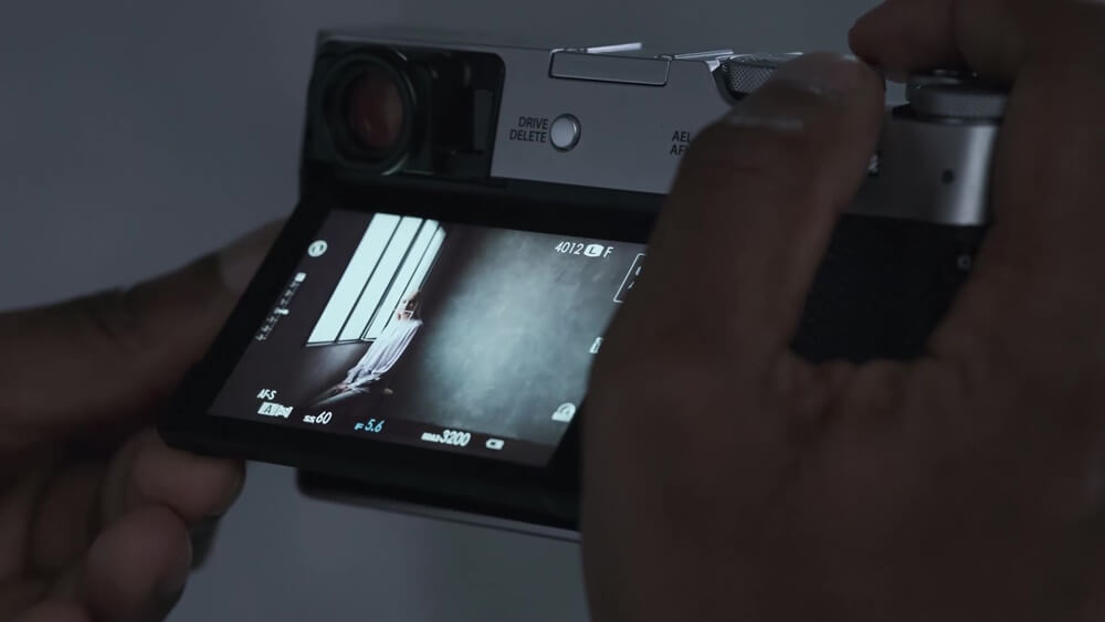 ทาง FUJIFILM ได้พัฒนากล้อง FUJIFILM X100V ตัวนี้กับระบบหน้าจอสัมผัสแบบ LCD ที่อยู่ด้านหลังกล้องสามารถพับจอขึ้น ทำให้ง่ายต่อการควบคุมและง่ายต่อการถ่ายภาพแบบนอกกรอบ