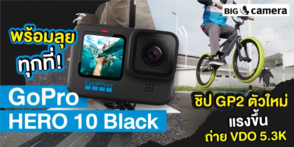 GoPro HERO 10 Black รุ่นใหม่นี้ หน้าตาก็จะคล้ายตัว 9 แต่บอกเลยว่าสเปคหรือการทำงานข้างในดีขึ้น แรงขึ้นแน่นอน ด้วยชิปตัวใหม่อย่าง GP2 ทำให้เราใช้งานได้อย่างเต็มประสิทธิภาพ ทำให้เราพร้อมพกพาเจ้าตัว GoPro HERO 10 Black ไปได้ทุกที่ แถมยังลุยน้ำได้ลึกถึง 10m กันเลยทีเดียว