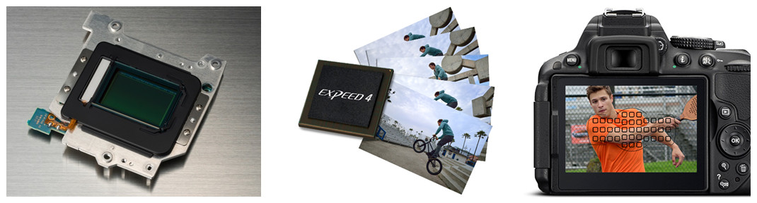 | Nikon D5300 กล้องที่ได้รับการออกแบบบอดี้ให้มีขนาดภายนอกกะทัดรัดจับกระชับยิ่งกว่ารุ่นเดิม (D5200) รวมถึงน้ำหนักที่เบาขึ้นอีก 25 กรัมโดยพัฒนาคุณสมบัติของเซ็นเซอร์รับภาพขนาด APS-C ให้ก้าวหน้าตามรุ่นพี่ (D7100) ด้วยการถอด OLPF (Optical Low-pass Filter) ออกให้ความละเอียดภาพถึง 24.2 ล้านพิกเซล เพื่อการถ่ายทอดความคมชัดและเก็บรายละเอียดในทุกส่วนได้อย่างเต็มที่ ให้โทนสีผิวนุ่มนวลจากการไล่โทนที่เป็นธรรมชาติทั้งในส่วนสว่างไล่ไปจนถึงรายละเอียดในโทนมืด (Highlight & Shadow) เลือกไฟล์ฟอร์แมตได้ทั้ง JPEG และ RAW แบบ 12 หรือ 14 bit ช่วยให้การตัดส่วนภาพทำได้ดีและมั่นใจว่าจะยังได้ภาพที่มีความคมชัดเพียงพอ |
