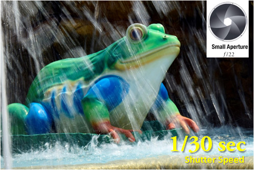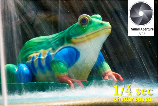 เปรียบเทียบการเลือกใช้ความเร็วชัตเตอร์ที่แตกต่างกันผลของภาพก็จะให้อารมณ์ภาพที่ไม่เหมือนกันทั้งนี้ขึ้นอยู่กับความต้องการของนักถ่ายภาพเป็นหลัก แต่สิ่งสำคัญควรใช้ร่วมกับขาตั้งกล้องเพื่อให้ภาพคมชัดสูง และควรมีสายลั่นชัตเตอร์ป้องกันกล้องขยับหรือเกิดการกระเทือนหากยังไม่มีก็อาจแก้ไขด้วยการใช้โหมดชัตเตอร์T (Time) ช่วยไปก่อน (กดครั้งแรกม่านชัตเตอร์จะเปิดค้างไว้ให้เมื่อต้องการปิดก็กดชัตเตอร์ซ้ำอีกครั้ง) ระยะเวลาในการเปิดนั้นจะไม่มีค่ามาตรฐานแน่นอนทั้งนี้ขึ้นอยู่กับความเร็วในการเคลื่อนที่ของวัตถุในที่นี้ก็คือน้ำ กับระยะห่างระหว่างกล้องกับวัตถุด้วย (ยิ่งใกล้จะให้ความรู้สึกไว ยิ่งไกลให้ความรู้สึกช้า)