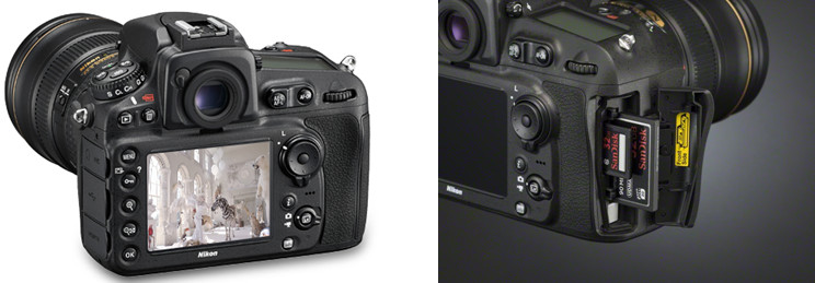 | D810 มีช่องใส่เมมโมรี่การ์ดสองช่องสองแบบ คือแบบ CF และแบบ SD Card เพื่อรองรับการบันทึกภาพไฟล์ขนาดใหญ่ทั้งไฟล์ JPEG และไฟล์ RAW CF Card จึงใช้ได้กับมาตรฐาน UDMA 7 รุ่นล่าสุด ส่วนช่องบรรจุแผ่นการ์ด SD นั้นใช้ได้กับ SDXC (Secure Digital eXtended Capacity) และ UHS-I นอกจากนี้ ยังสามารถใช้การ์ดสองตัวพร้อมกันได้หลากหลายวิธี เช่น บันทึกข้อมูลเป็น JPEG และ RAW ในการ์ดแยกกัน หรือบันทึกข้อมูลประเภทเดียวกันในทั้งสองการ์ดพร้อมกันเพื่อสำรองข้อมูล และอื่นๆ อีกมากมาย หากคุณต้องการถ่ายภาพให้อยู่ในรูปแบบไฟล์ RAW เพื่อปรับปรุงภาพในขั้นตอนหลังการผลิตแต่ก็ต้องการสร้างไฟล์ที่รวดเร็ว ตัวกล้องก็มีไฟล์ JPEG เป็นอีกทางเลือกหนึ่ง ไฟล์ RAW ขนาดเล็ก (S) แบบใหม่ (ไม่บีบอัด 12 บิท) มีความละเอียดเท่ากับหนึ่งในสี่และมีขนาดครึ่งหนึ่งของไฟล์ RAW ขนาดใหญ่ (L) แบบไม่บีบอัดซึ่งจะยังคงความคมชัดและระดับสัญญาณรบกวนเทียบเท่า JPEG ขนาดเล็ก แต่ยังแสดงผลที่สมบูรณ์แบบและสามารถปรับเปลี่ยนรูปแบบไฟล์ RAW ได้ และจุดเด่นของกล้องฟูลเฟรมนิคอนคือ มีตัวเลือกของรูปแบบพื้นที่ภาพ4รูปแบบ ได้แก่ รูปแบบ FX (35.9 x 24.0 มม.), 5:4 (30.0 x 24.0 มม.), 1.2x (30.0 x 19.9 มม.) และรูปแบบ DX (23.4 x 15.6 มม.) โดยพื้นที่ภาพตัดส่วนทั้งหมดจะทำเครื่องหมายไว้ให้เห็นในช่องมองภาพ รูปแบบ DX จะให้งานการตัดส่วนภาพได้ประมาณ 1.5 เท่า และ 1.2 เท่า และงานเอ็ฟเฟ็กต์เทเลโฟโต้ได้ประมาณ 1.2 เท่า เมื่อใช้เลนส์ DX NIKKOR กล้องจะเลือกรูปแบบ DX โดยอัตโนมัติ |