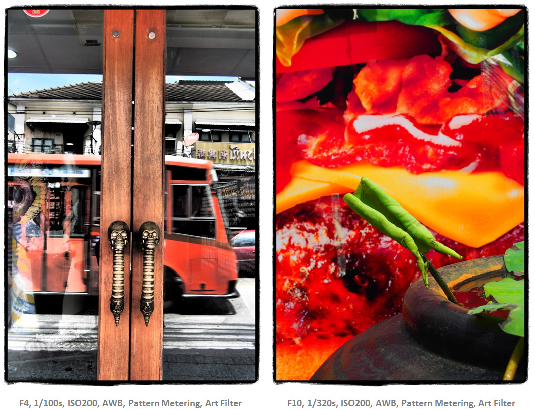 | OLYMPUS PEN E-P5 ทำให้คนหลงเสน่ห์การใส่กรอบให้ภาพเพราะสามารถเนรมิตภาพธรรมดาๆให้ดูน่าสนใจอย่างน่าอัศจรรย์ อาทิ กรอบขอบสีดำ, กรอบแบบมีขอบสีขาวฟุ้ง สีสันภาพสดใสอิ่มตัว สำหรับความสุดยอดในเรื่องการหยุดภาพด้วยความเร็วชัตเตอร์สูงสุดถึง 1/8000 วินาที ที่ส่วนใหญ่จะพบได้เฉพาะกล้อง DSLR ระดับโปรสามารถนำไปใช้กับการหยุดจังหวะการไหวของวัตถุให้หยุดนิ่งสนิท แม้จะมีโอกาสใช้ไม่มากสำหรับการถ่ายภาพทั่วไป แต่เมื่อใดที่ต้องการไปถ่ายภาพกีฬาที่มีความเร็วของวัตถุเข้ามาเกี่ยวข้อง อาทิ มอเตอร์สปอร์ต จักรยานวิบาก ความเร็วชัตเตอร์สูงจะเป็นประโยชน์อย่างมาก หรือกรณีถ่ายภาพนางแบบที่ต้องการเปิดค่ารูรับแสงกว้างๆเพื่อให้ได้ระยะชัดตื้น (หน้าชัด หลังเบลอ) ในสภาพแสงแดดแรงๆ การมีความเร็วชัตเตอร์สูงให้เลือกมากจะช่วยให้ได้ภาพตามความต้องการอย่างใจคิด เดินถ่ายภาพมานานพอสมควรสังเกตระดับสเกลพลังงานแบตเตอรี่เพิ่งจะลดลงไปขีดเดียวเอง แสดงว่าแบตเตอรี่อึดใช้ได้เลยเนื่องจากระบบการทำงานต่างๆกินพลังงานงานน้อยกว่าปกติ แต่ให้ปลอดภัย และสบายใจยามเดินท่องเที่ยวควรหาแบตเตอรี่สำรองอีกสักก้อนให้อุ่นใจ |