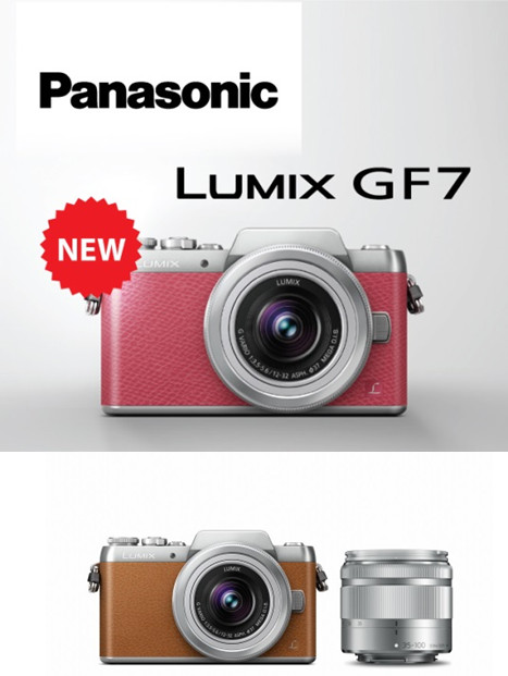 Lumix DMC-GF7 ทันสมัยด้วยแนวคิดการออกแบบนำเสนอความคลาสสิก เน้นความกะทัดรัด พกพาง่าย และเพียบพร้อมด้วยฟังก์ชั่นการทำงานที่มีในกล้องระดับสูง และทันสมัยในด้านเทคโนโลยีที่ผสานอย่างลงตัวกับเซ็นเซอร์ Digital Live MOS 16 ล้านพิกเซลและ Venus Engine ทำให้มีความเร็วในการตรวจจับภาพสูงสุดถึง 240FPS(Light Speed AF) เพิ่มประสิทธิภาพด้านความไวแสงสูงขึ้นช่วยให้มีสัญญานรบกวนต่ำภายใต้แสงน้อย (-4EV) โดยช่วยในเรื่องการโฟกัสภาพให้แม่นยำอีกด้วยตัวบอดี้มีสีให้เลือกถึง 4 สไตล์ ได้แก่สีเงิน สีชมพู สีขาว และสีน้ำตาลรายละเอียดแต่ละส่วนประกอบทำได้มาตรฐานสูงดูหรูหรามีคุณค่า