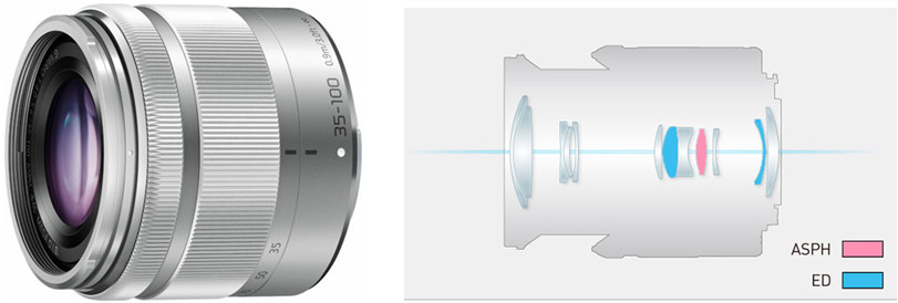 | Lumix G VARIO 35-100mm F4-5.6 ASPH. MEGA O.I.S. เลนส์ซูมช่วงเทเลโฟโต้ใหม่ที่มีขนาดเล็ก กะทัดรัด น้ำหนักเบาออกแบบมาเพื่อเป็นทางเลือกให้กับนักถ่ายภาพที่ชื่นชอบการถ่ายภาพบุคคล (Portrait) หรือต้องการนำไปบันทึกภาพวัตถุที่ต้องมีระยะห่างจากตัวกล้องเมื่อนำไปถ่ายภาพในธรรมชาติ มีโครงสร้างชิ้นเลนส์ 12 ชิ้น แบ่งเป็น9กลุ่ม ประกอบด้วยชิ้นเลนส์ Aspherical เพื่อแก้อาการคลาดสี จำนวน 1 ชิ้น และชิ้นเลนส์พิเศษ ED(Extra Low-Despersion) ช่วยลดอาการขอบม่วง จำนวน2ชิ้น ใช้ม่านไดอะแฟรม จำนวน 7ใบพร้อมใส่ระบบป้องกันภาพสั่นไหว MEGA O.I.S. ช่วยให้สามารถถือกล้องถ่ายภาพในสภาพแสงน้อยได้ดียิ่งขึ้นด้วยความเร็วชัตเตอร์ต่ำ สำหรับการปรับระยะโฟกัสเข้าใกล้วัตถุได้มากสุดที่ 0.9 เมตรที่ช่วงทางยาวโฟกัส 35มม. เลือกใช้ฟิลเตอร์สวมปกป้องหน้าเลนส์ได้ตามสะดวกทั้งฟิลเตอร์ UV หรือฟิลเตอร์ Protector ในขนาด 46มม. นำพกพาเก็บไว้ในกระเป๋าด้วยน้ำหนัก 135 กรัมเท่านั้น |