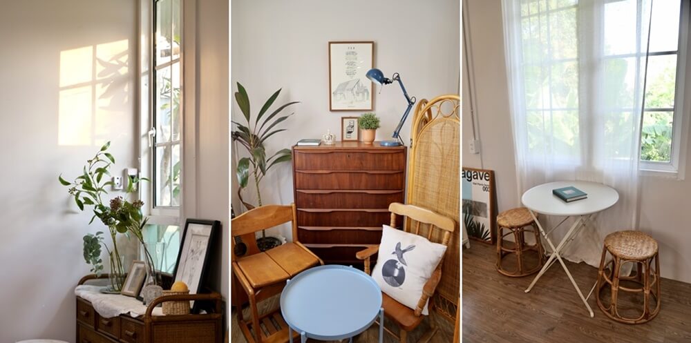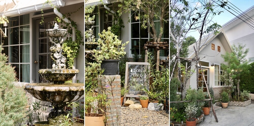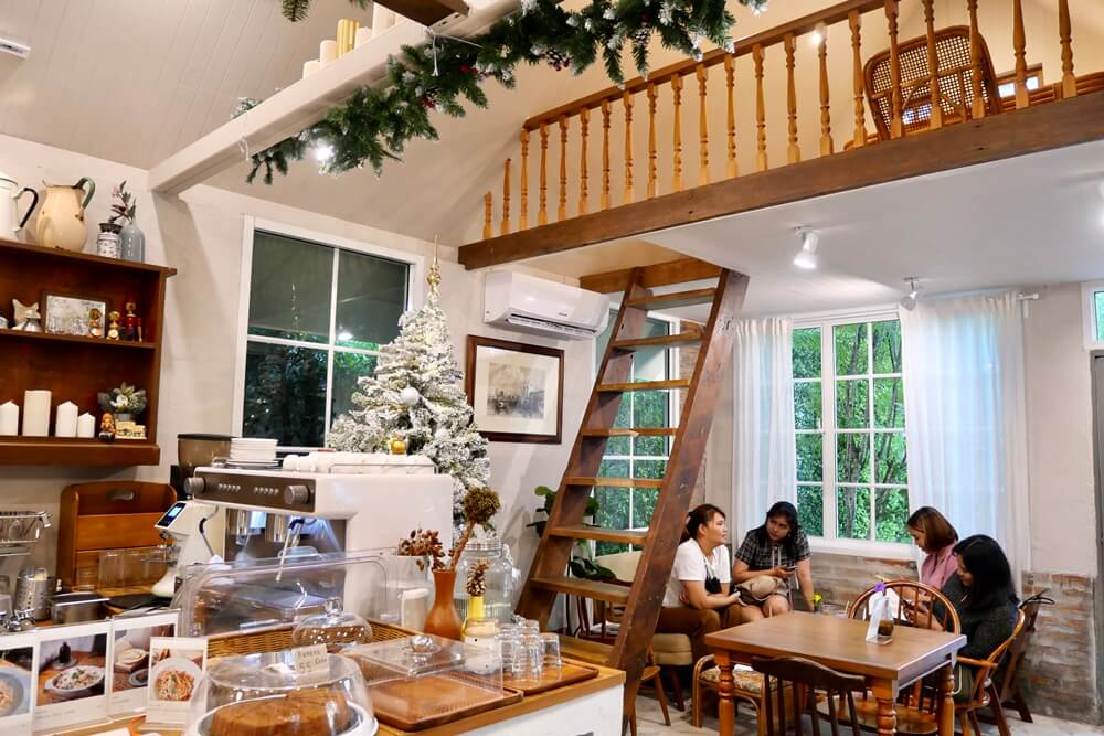 โซนร้านแบ่งออกเป็น 2 โซน มีโซน outdoor (สวน) และ indoor ภายในร้านตกแต่ง เน้นการใช้เฟอร์นิเจอร์ไม้และของตกแต่งสีขาวโทนอบอุ่น ดูสบายตา ให้บรรยากาศ Cozy หน่อยๆ