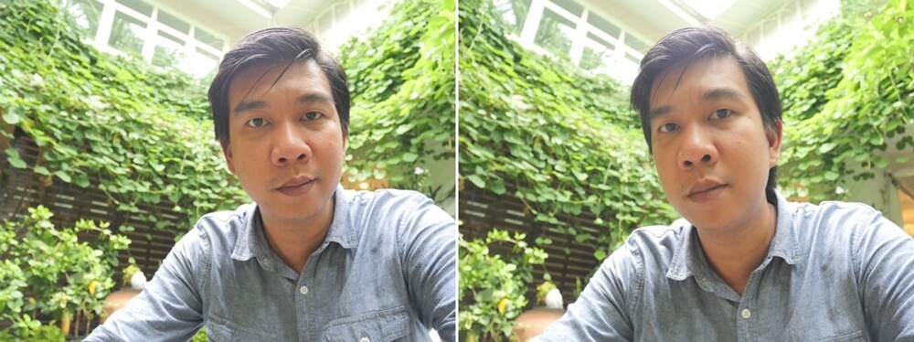 ปิด (ภาพซ้าย) - เปิด (ภาพขวา) โหมด Soft Skin
