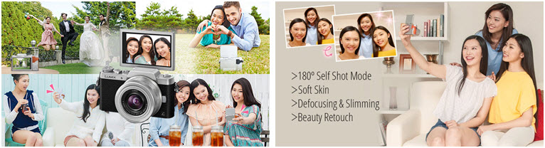 | PANASONIC พัฒนากล้องมิลเลอร์เลสหลากหลายซีรีย์เพื่อตอบโจทย์ไลฟ์สไตล์ให้ได้มากกว่าที่เคยสำหรับผู้ที่เริ่มสนใจรักการถ่ายภาพตลอดจนนักถ่ายภาพระดับมืออาชีพที่ต้องมีเครื่องมือที่ไว้ใจได้ในการทำงาน ในกล้องระดับเริ่มต้นพานาโซนิคได้ออกแบบและพัฒนากล้องซีรีย์ GF เพื่อตอบโจทย์ Lifestyle ของนักถ่ายภาพเวลานี้ที่นิยมการถ่ายภาพแบบเซฟฟี่(Selffie) ในการบอกเล่าเรื่องราวผ่านโซเชียลมีเดียทันที |