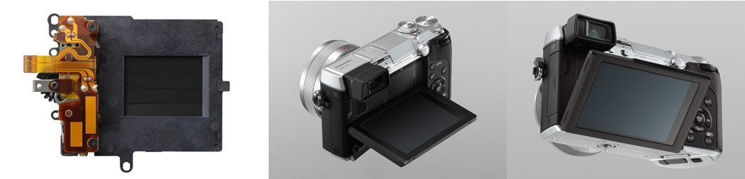 - ช่องมองภาพแบบอิเล็คทรอนิกส์ LVF (Live View Finder) ในตัว มีความละเอียด 2.76 ล้านจุด ถือเป็นตัวแรกของโลกที ปรับมุมมองภาพได้