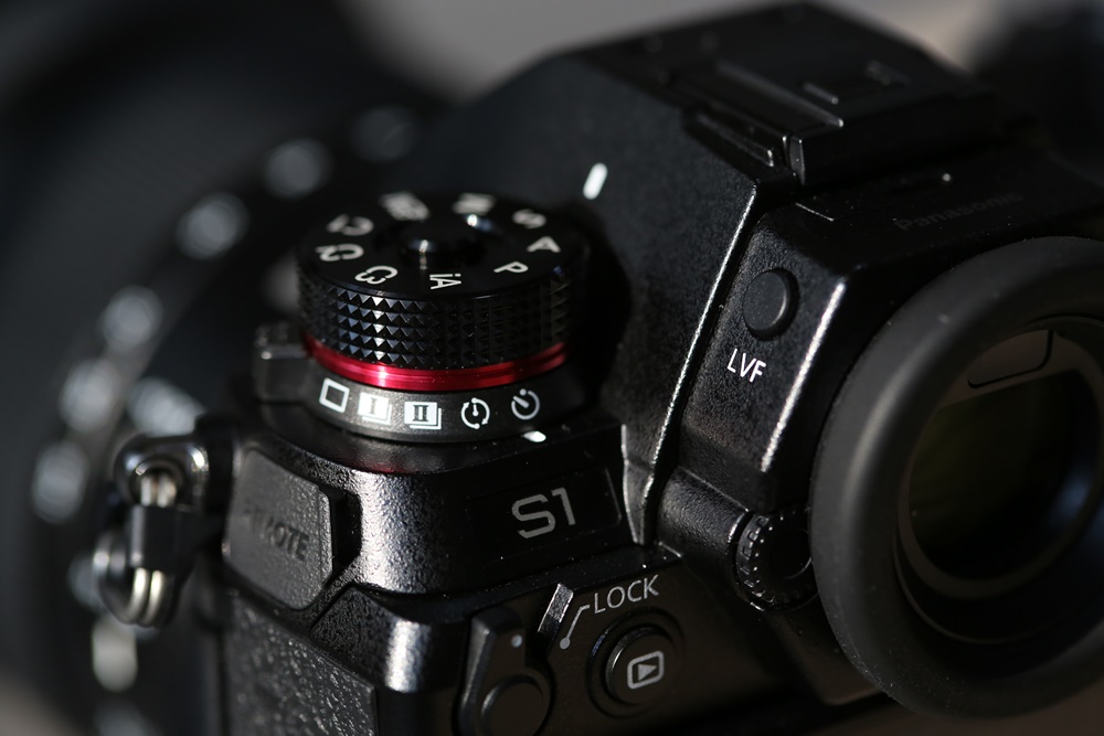 ปุ่ม Dial เลือกโหมดของเจ้า Lumix S1 ดูผ่านๆนี่นึกว่าของรุ่นพี่อย่าง Lumix G9 เลยครับ คือมีปุ่มล็อค Dial มาให้เหมือนเดิม จะปลดล็อคเพื่อเลือกโหมดก็แค่กดปุ่มตรงกลาง 1 ครั้ง ป้องกันการเผลอเลื่อนเปลี่ยนโหมดโดยไม่ตั้งใจนั่นเองครับ และตรงฐานของ Dial ก็เป็น Drive mode ซึ่งมีให้เลือกโหมดการถ่ายหลากหลายเช่นเคยครับ