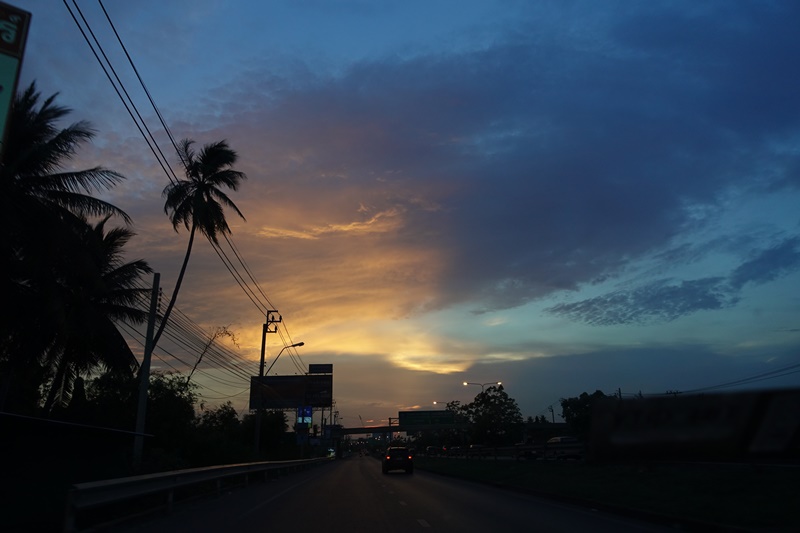 พระอาทิตย์ลับขอบฟ้าตอนเย็นหลังจากวันทำงานเหนื่อย ทำให้อยากจอดรถแล้วลงมาถ่ายรูปจริงๆ