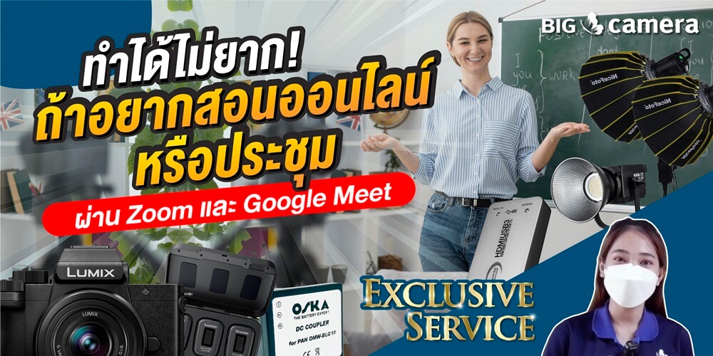 บอกเลยว่าไม่ยาก ถ้าอยากสอนและประชุมออนไลน์ผ่านกล้อง อยากได้ภาพไลฟ์ที่คมชัด เสียงชัดเจน แสงได้ สีตรงปกแล้วล่ะก็ กล้องและอุปกรณ์สำคัญมาก สำหรับใครที่ต้องการอุปกรณ์ตอบโจทย์โดยเฉพาะ ก็ติดต่อมาทาง BIG Camera ได้เลย!
