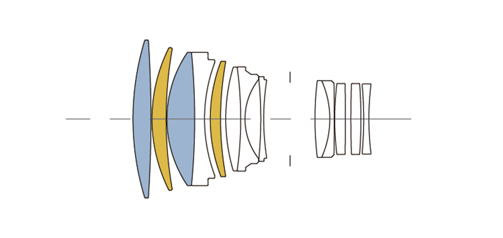 ภายในตัวเลนส์ประกอบด้วยชิ้นเลนส์ 13 ชิ้น 10 กลุ่ม โดยมีชิ้นเลนส์พิเศษคือ SLD Super Low Dispersion (สีฟ้า) มาให้ 2 ชิ้น และ FLD ลดความคลาดเคลื่อนสี นอกจากนี้ยังมีชิ้นเลนส์2 ชิ้นแก้อาการขอบม่วงขอบเขียว ทำให้เลนส์ตัวนี้ให้ภาพที่สว่างใส มีความคมและมีขอบม่วงที่น้อยมากๆ