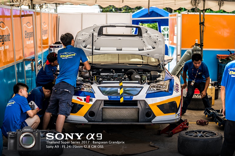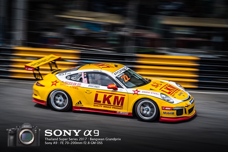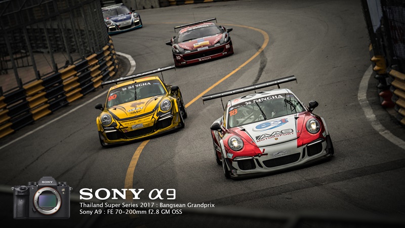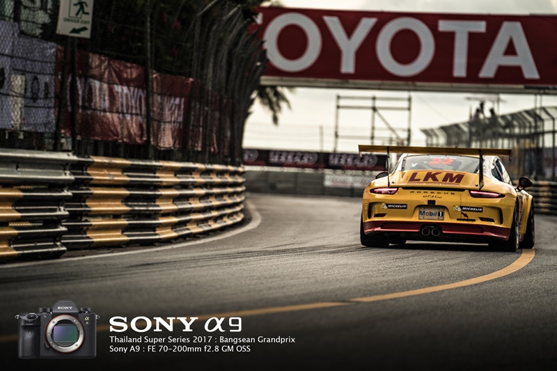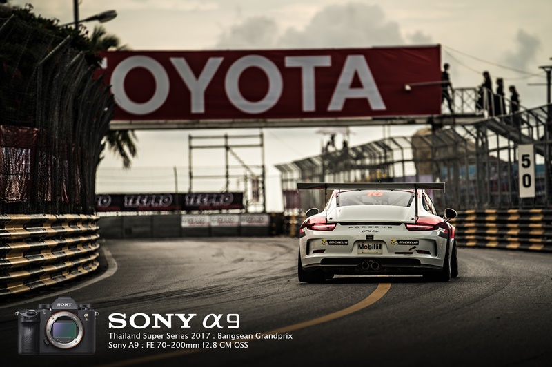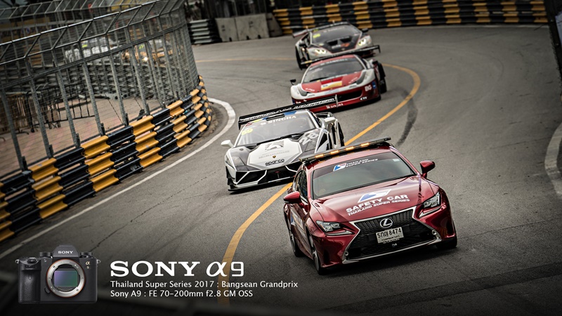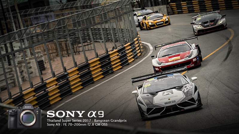 เราได้มีโอกาสเข้าร่วมทดสอบกล้อง Sony A9 ในงาน Thailand Super Series Bangsean Grandprix ที่ผ่านมา 1 วันเต็มที่ได้ใช้ A9 แบบเต็มที่กับการถ่ายภาพรถ Supercar ที่แข่งขันกันด้วยควมเร็วสูง เลนส์ที่ได้ใช้ทดสอบมี 2 ตัวคือ FE 24-70mm f2.8 GM OSS และ 70-200mm f2.8 GM OSS สิ่งแรกที่ทำให้เราทึ่งก็คือ ระบบโฟกัสแบบต่อเนื่องของกล้อง A9 ที่ทำได้ดีมากแบบที่ไม่เคยได้สัมผัสมาก่อนในก่อนรุ่นไหน ๆ