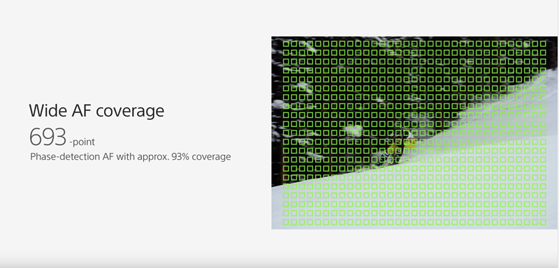 จุดเด่นอีกอย่างหนึ่งของ A9 นอกจากความเร็วในการถ่ายภาพและการส่งข้อมูลแล้ว จำนวนจุดโฟกัสที่มีเยอะมากถึง 693 จุด ครอบคลุมพื้นที่กว่า 93% ของภาพ ทำให้สามารถโฟกัสวัตถุต่าง ๆ ได้สะดวกมากยิ่งขึ้น แม่นยำทุกการเคลื่อนไหว ความเร็วในการโฟกัสที่สูงมาก และสามารถโฟกัสแบบติดตามวัตถุได้ชนิดที่ว่ากัดไม่ปล่อยเลยทีเดียว