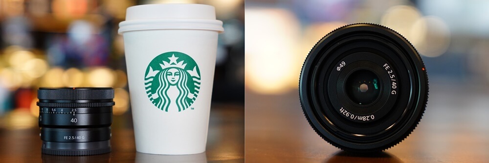 เลนส์ Compact เมื่อเทียบกับฝ่ามือ และ แก้ว Starbuck ไซส์ Tall