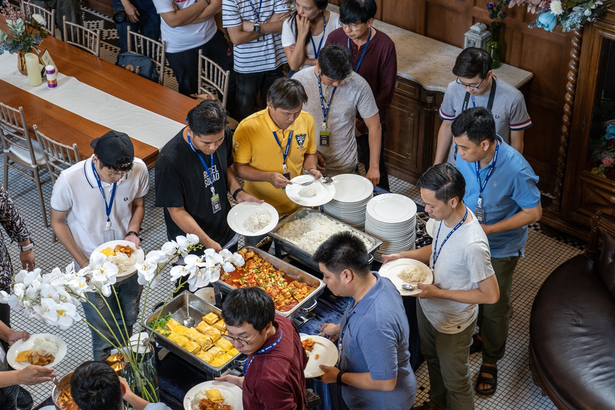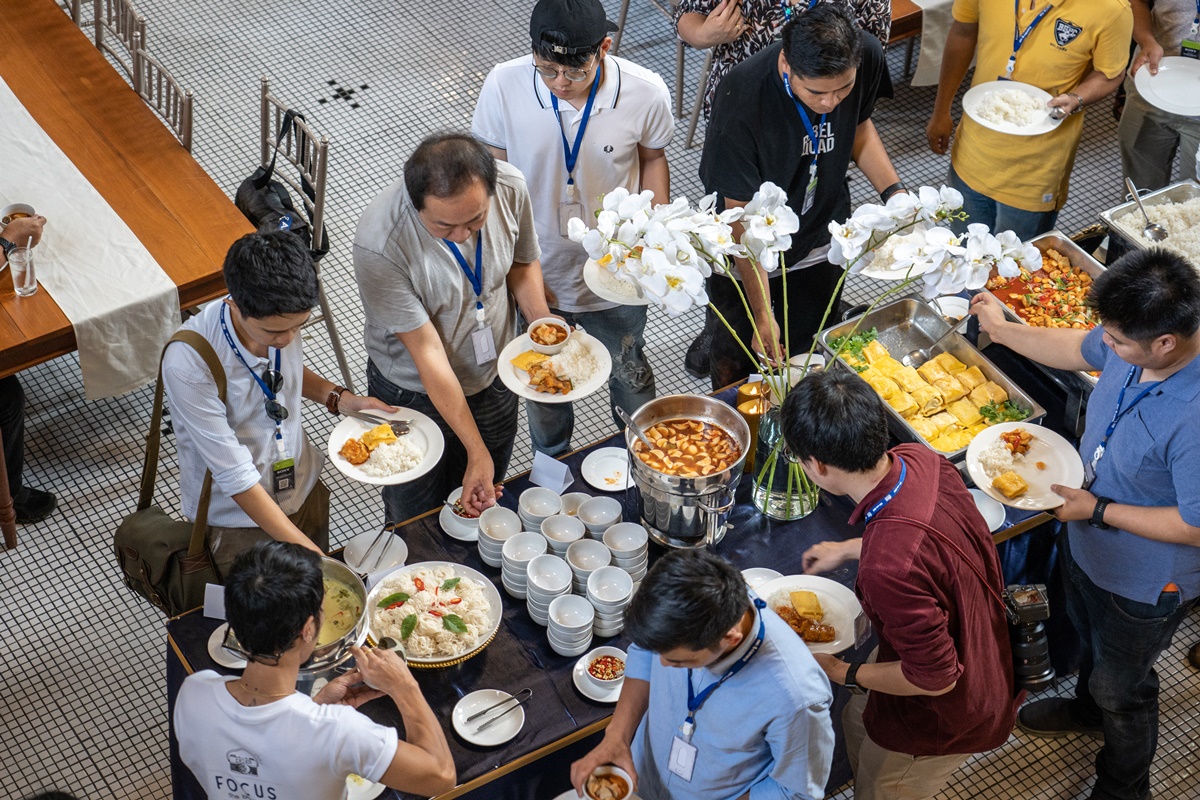นั่งฟังคุณวินให้ความรู้การถ่ายเวดดิ้งแบบเจาะลึกกันไปแล้ว ก็ถึงเวลารับประทานอาหารกลางวัน ซึ่ง BIG Camera ก็จัดเต็มบุฟเฟ่ต์สุดหรูแบบพิเศษไว้ให้ มีอาหารให้เลือกรับประทานหลากหลาย และยังปิดท้ายด้วยขนมหวานแสนอร่อยจนเต็มอิ่มเลยครับ